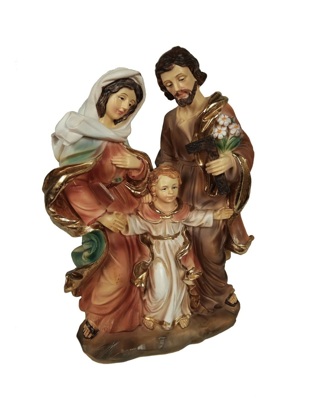 Estatua Figura Religiosa de Culto Sagrada Familia Pintada a Mano Decoración Hogar. Medidas: 20 cm.