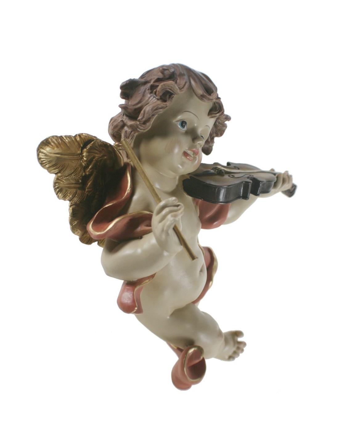 Figura Decorativa Religiosa Ángel Tocando Violín para Pared de Resina Decoración Hogar. Medidas: 26x20x21 cm.