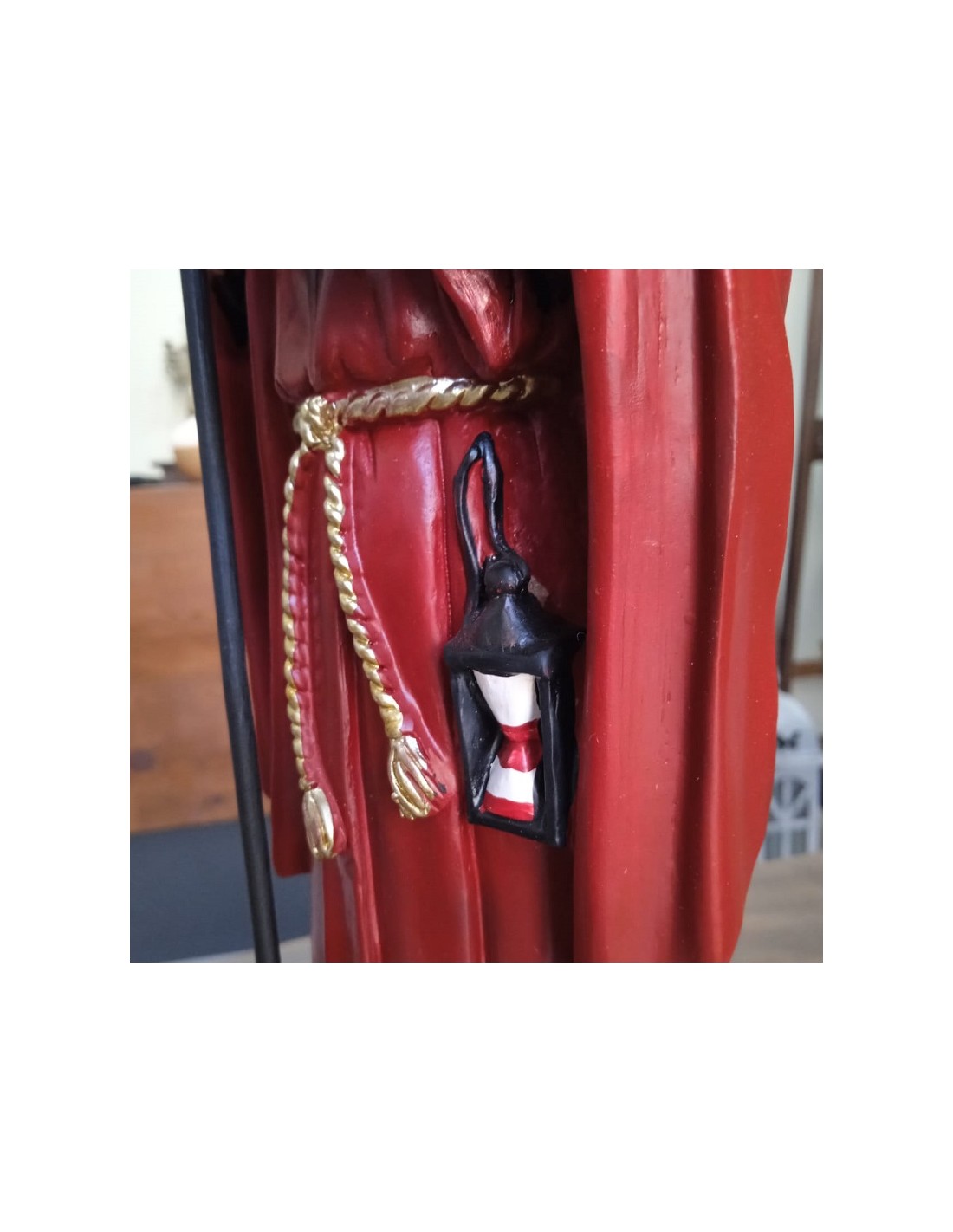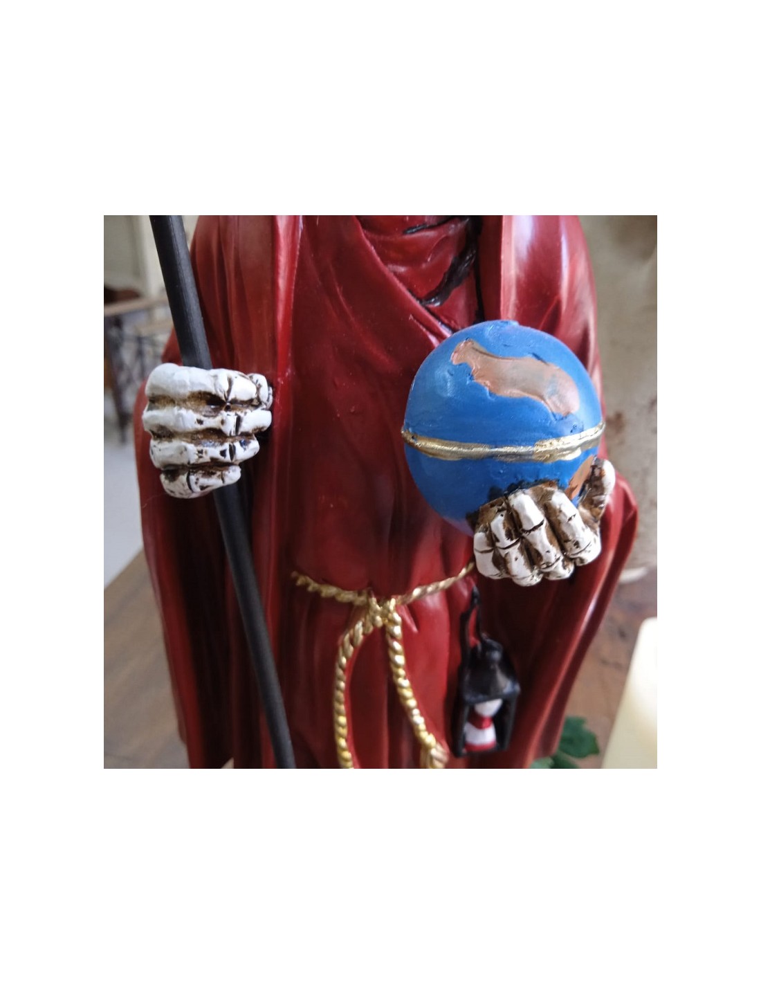 Figura Estatua de la Santísima Muerte color rojo pintada a mano decoración hogar. Medidas: 39x14x11 cm.