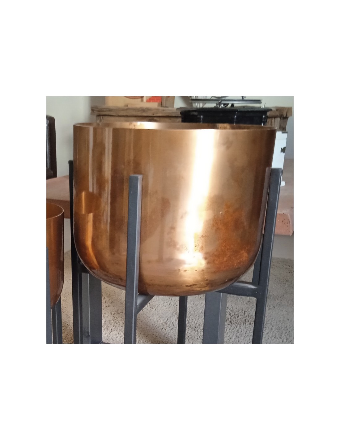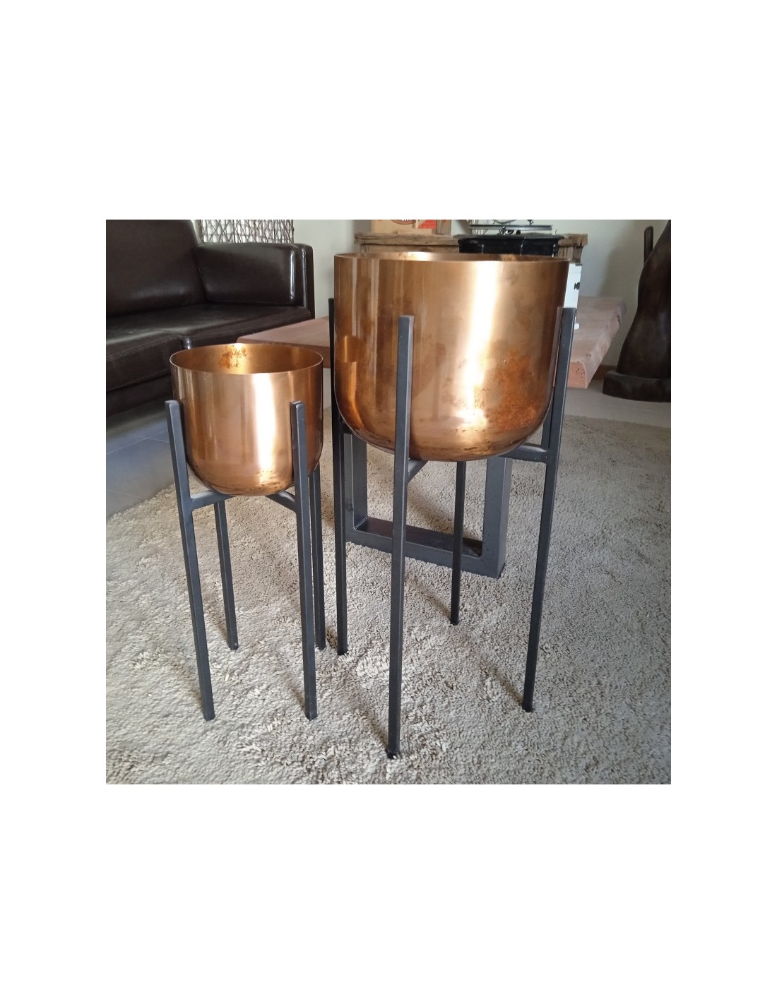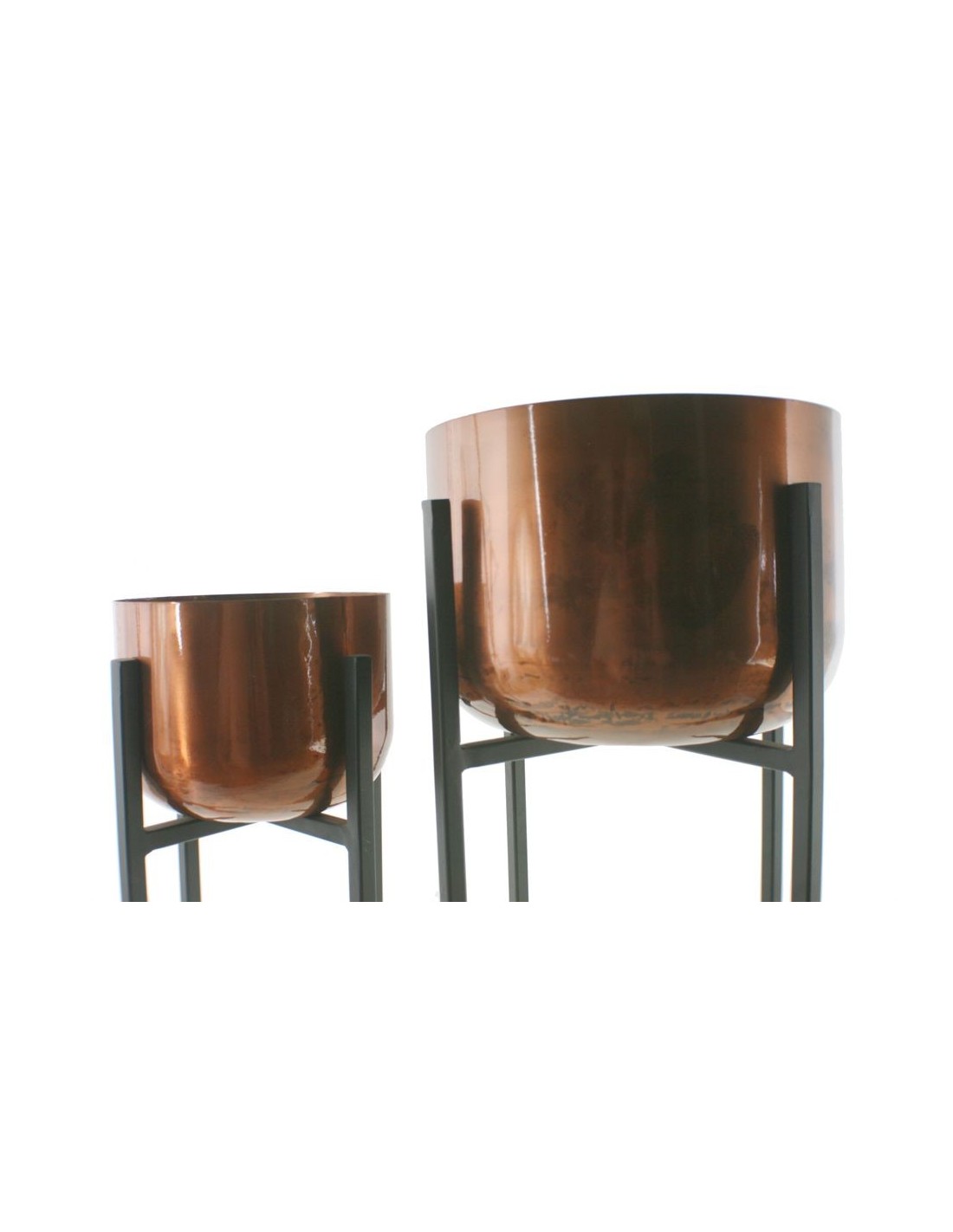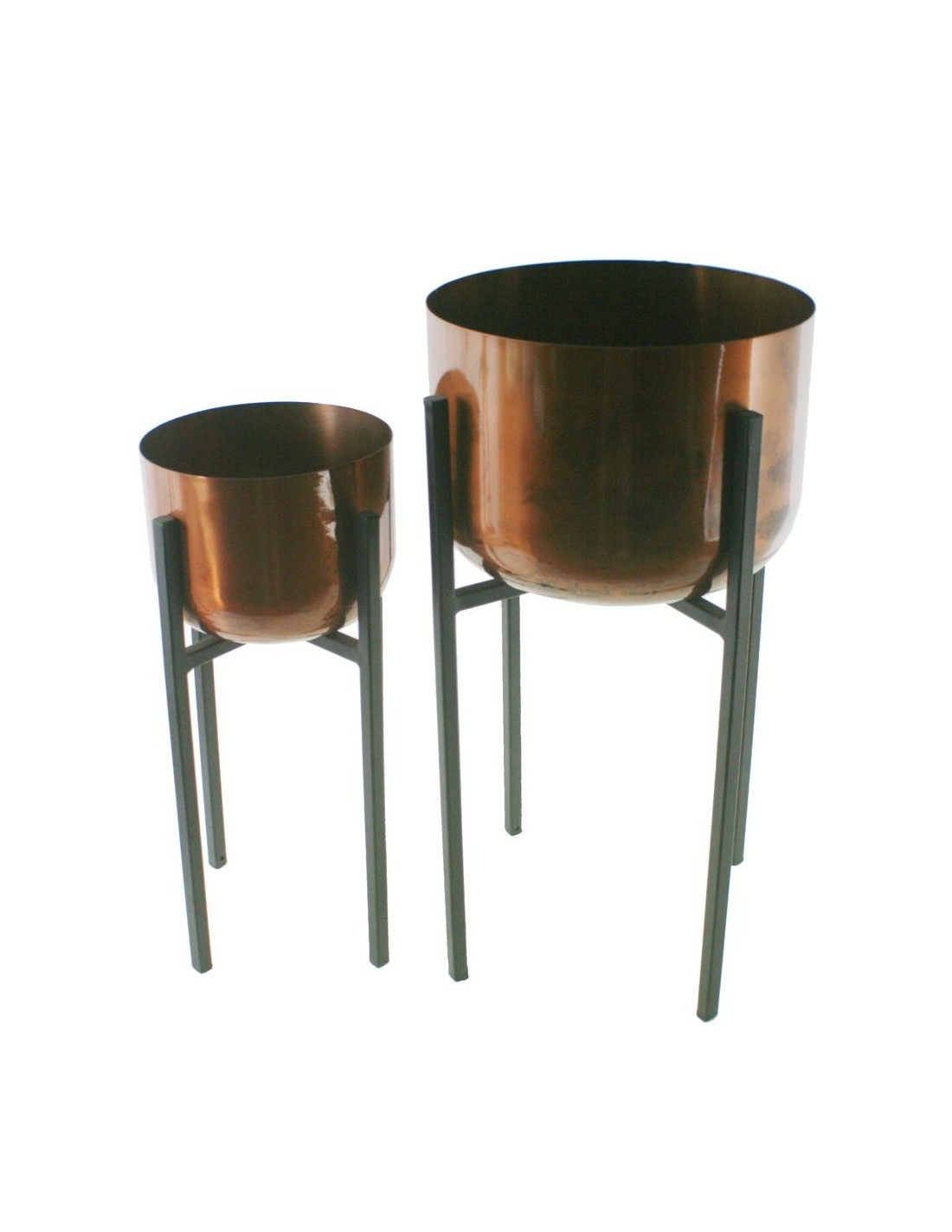 Este juego de dos maceteros combina una elegante base de color cobre con patas de metal negro en dos alturas diferentes, convirtiéndolos en un complemento ideal para la decoración de interiores. Ya sea que desees dar la bienvenida a tus invitados en la entrada de tu casa con un toque de nostalgia y calidez, o transformar tu oficina o vestíbulo en un espacio que refleje tu estilo único.