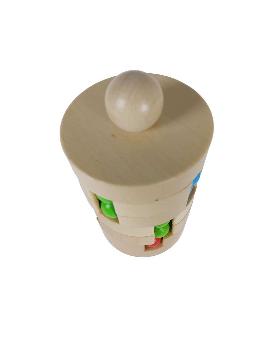 Cilindro de madera con bolas de colores.