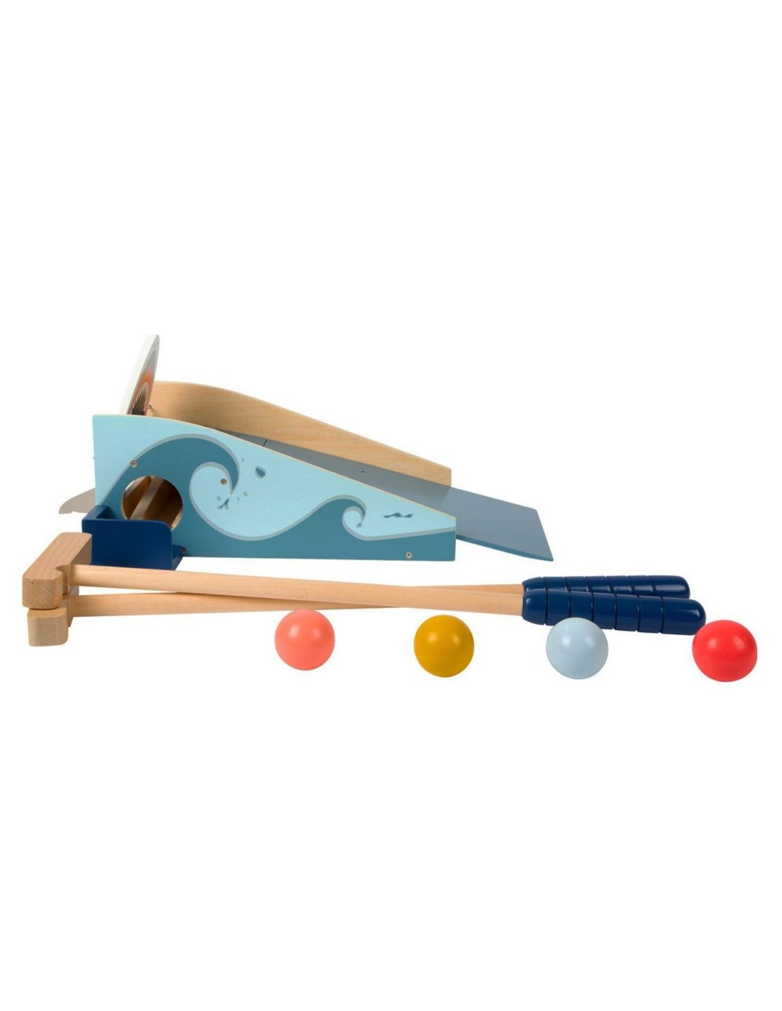 Con este mini golf infantil de madera, los pequeños podrán disfrutar de una experiencia divertida mientras desarrollan su coordinación y precisión. Su diseño en forma de tiburón y ola gigante lo convierte en un reto emocionante.