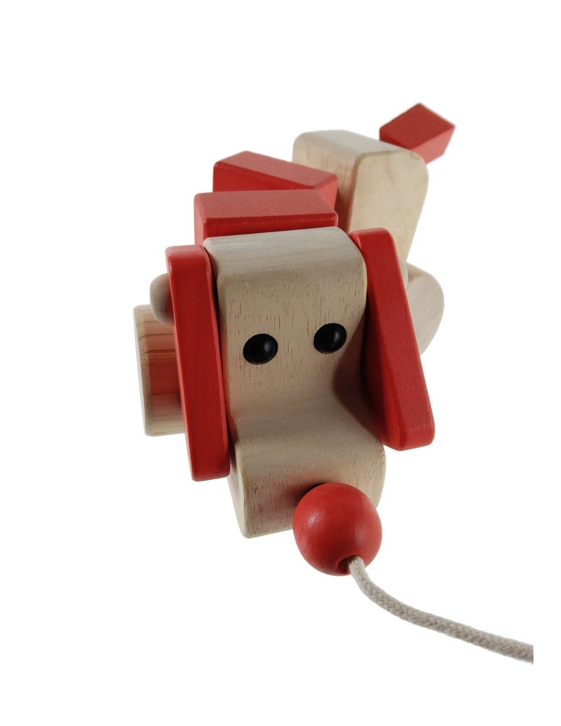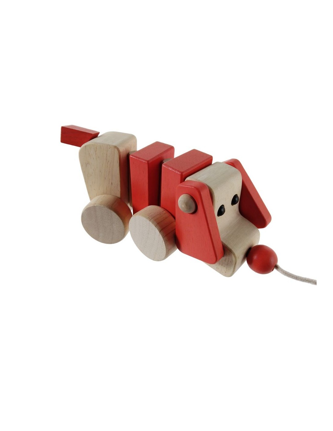 Fabricado en madera maciza de haya y barnizado para protegerlo, este perrito combina calidad, resistencia y un diseño encantador. Sus formas suaves y seguras lo hacen perfecto para las manos pequeñas.