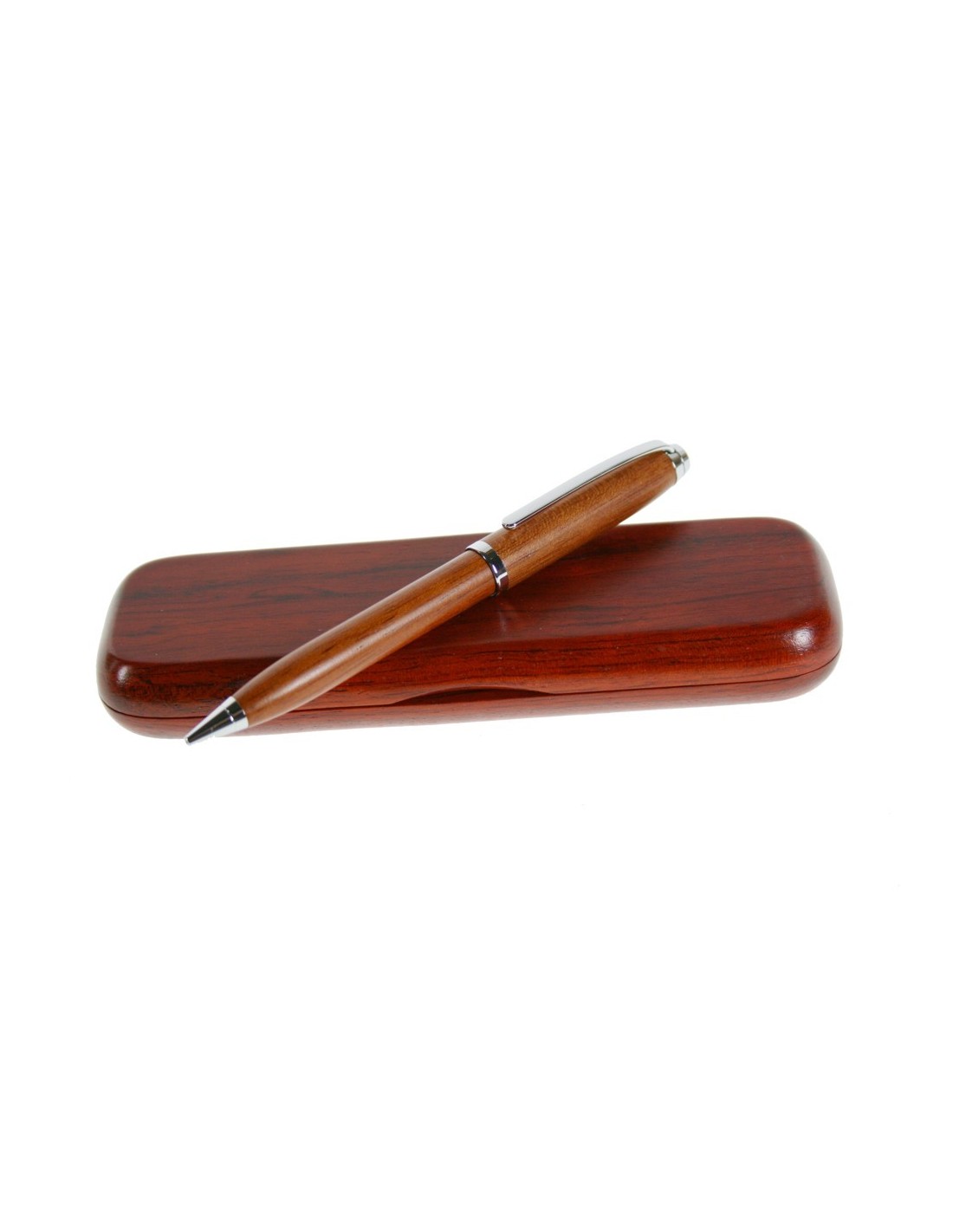 Portaminas 1m/m. de madera cerezo en estuche con clip cromado. Medidas: 14xØ1,3 cm.