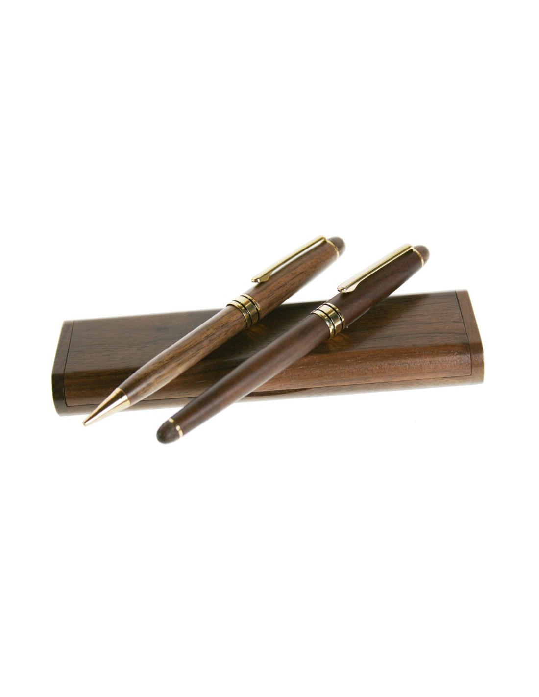 Juego de portaminas 1m/m. y roller tinta de madera nogal en estuche. Medidas: 17x5 cm.