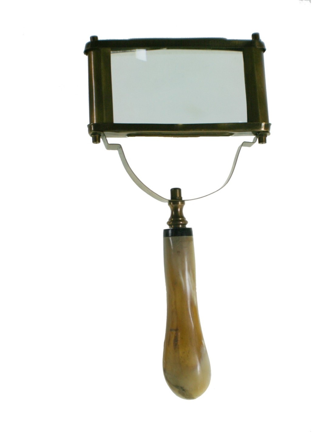 Lupa de mano rectangular grande de metal, acabada en oro viejo. Ideal para regalo.