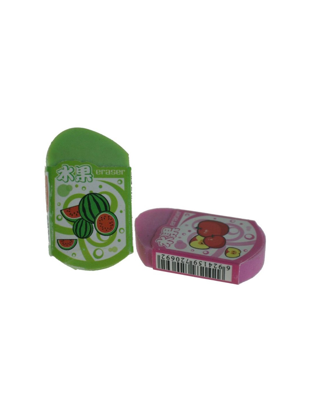 Set de gomas de borrar forma frutas color verde y rosa. Medidas: 4x2,5 cm.