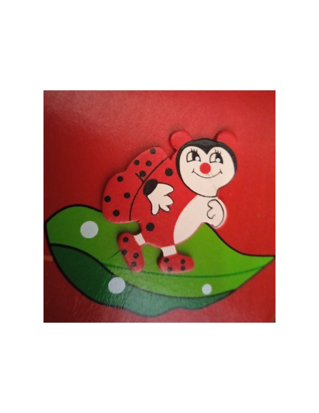 Libreta Infantil Hojas a Rayas con tapas de madera de Color Roja decorada con Mariquita y Sol. Medidas: 15x11 cm.