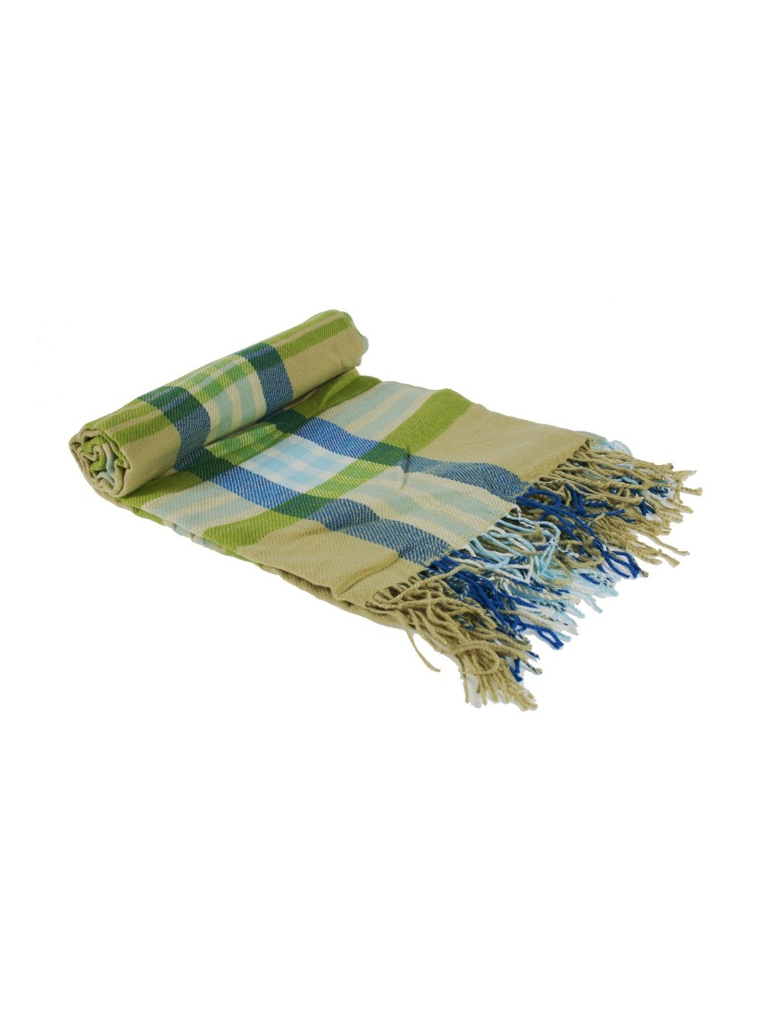 Manta para Sofá y Cama color Verde con Flecos Dibujo Cuadros Funcionalidad para el Hogar. Medidas: 130x150 cm.