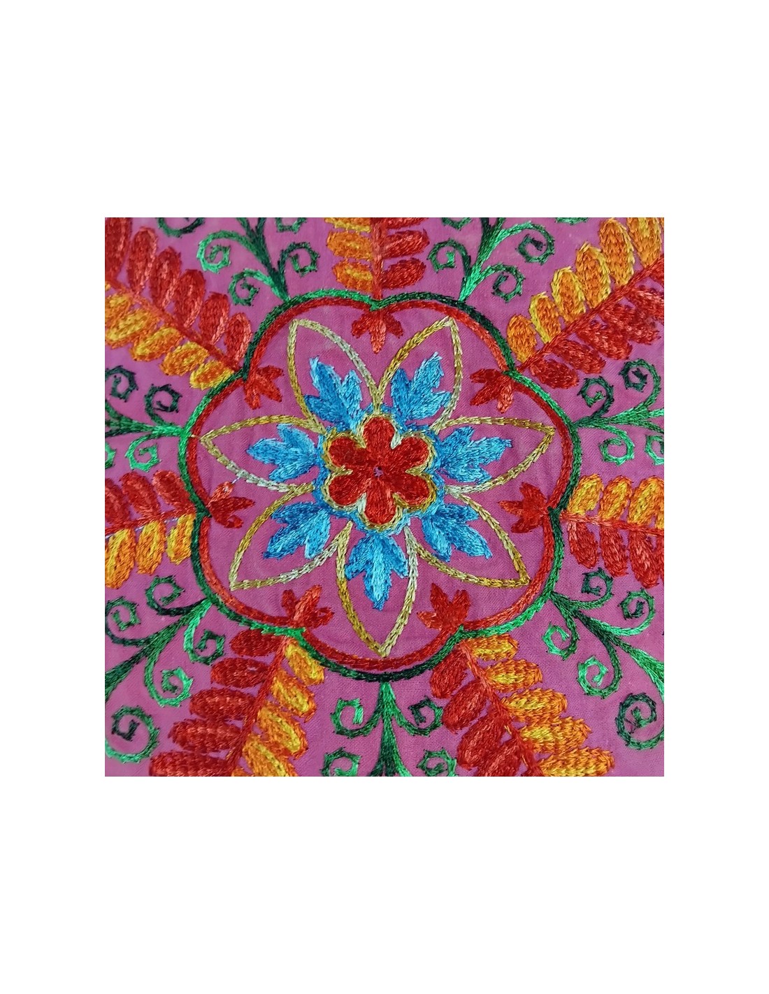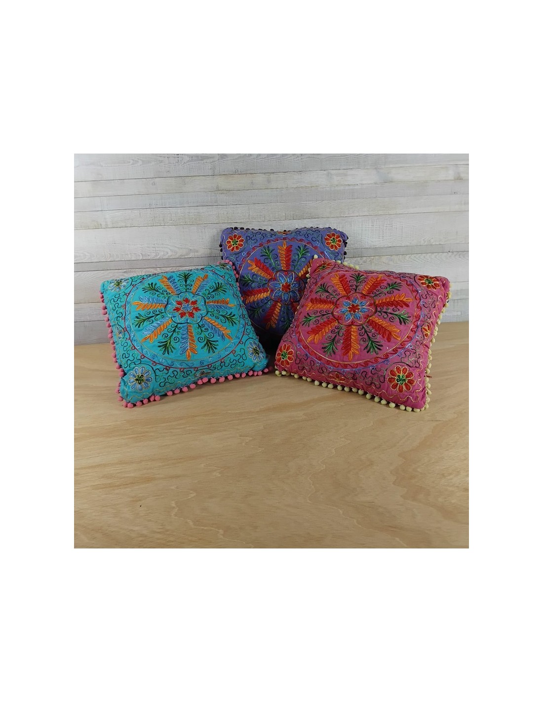 Cojín Hippie Bordado Multicolor, Color Rosa, Estilo Bohemio a tu Hogar. Medidas: 40x40 cm.