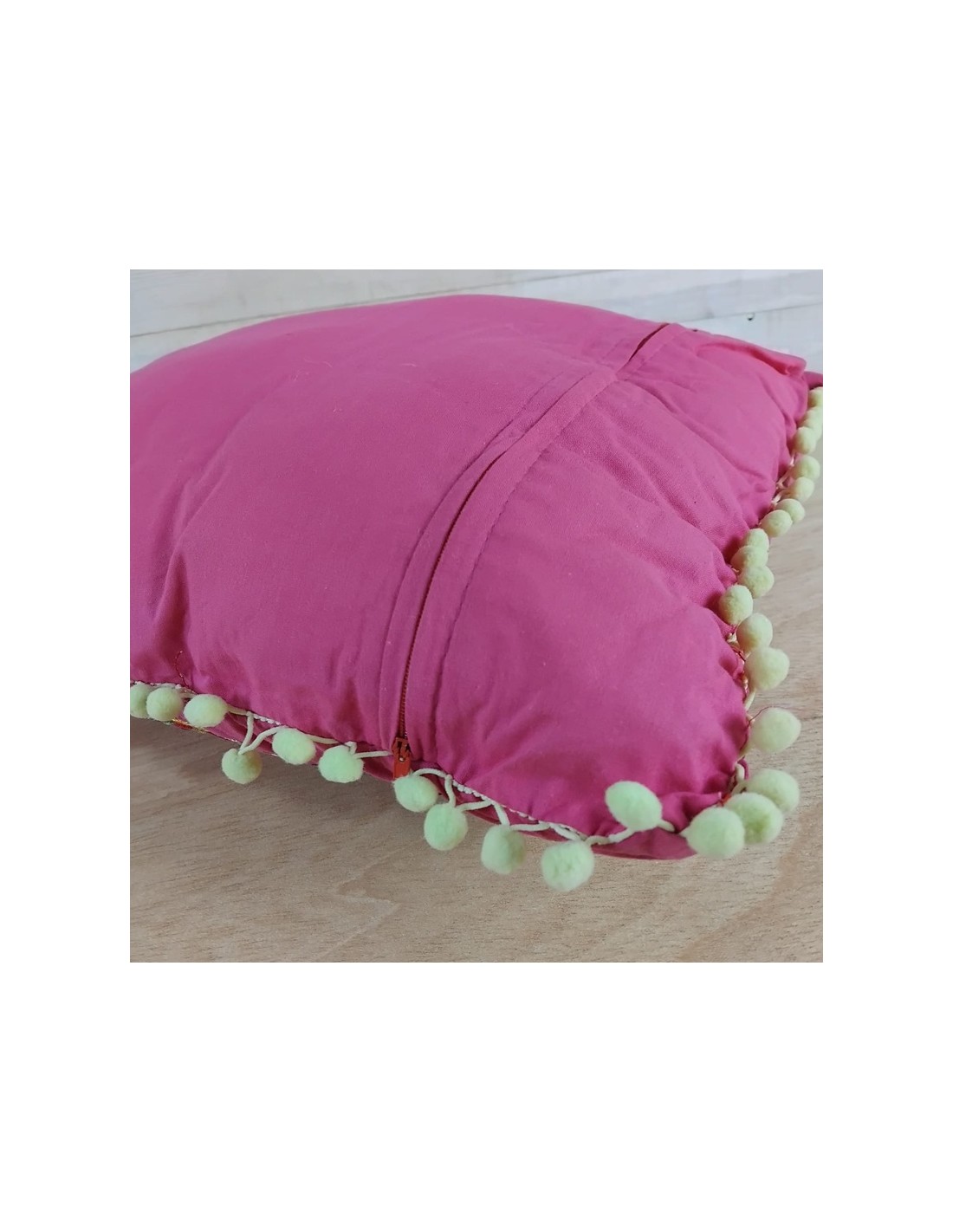 Cojín Hippie Bordado Rosa: Atrevimiento y Color para Tu Espacio.