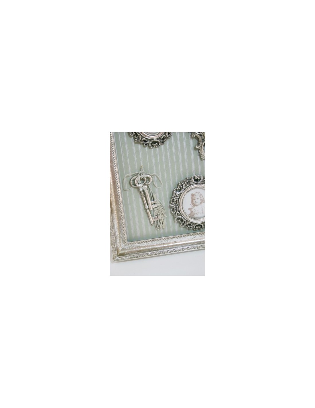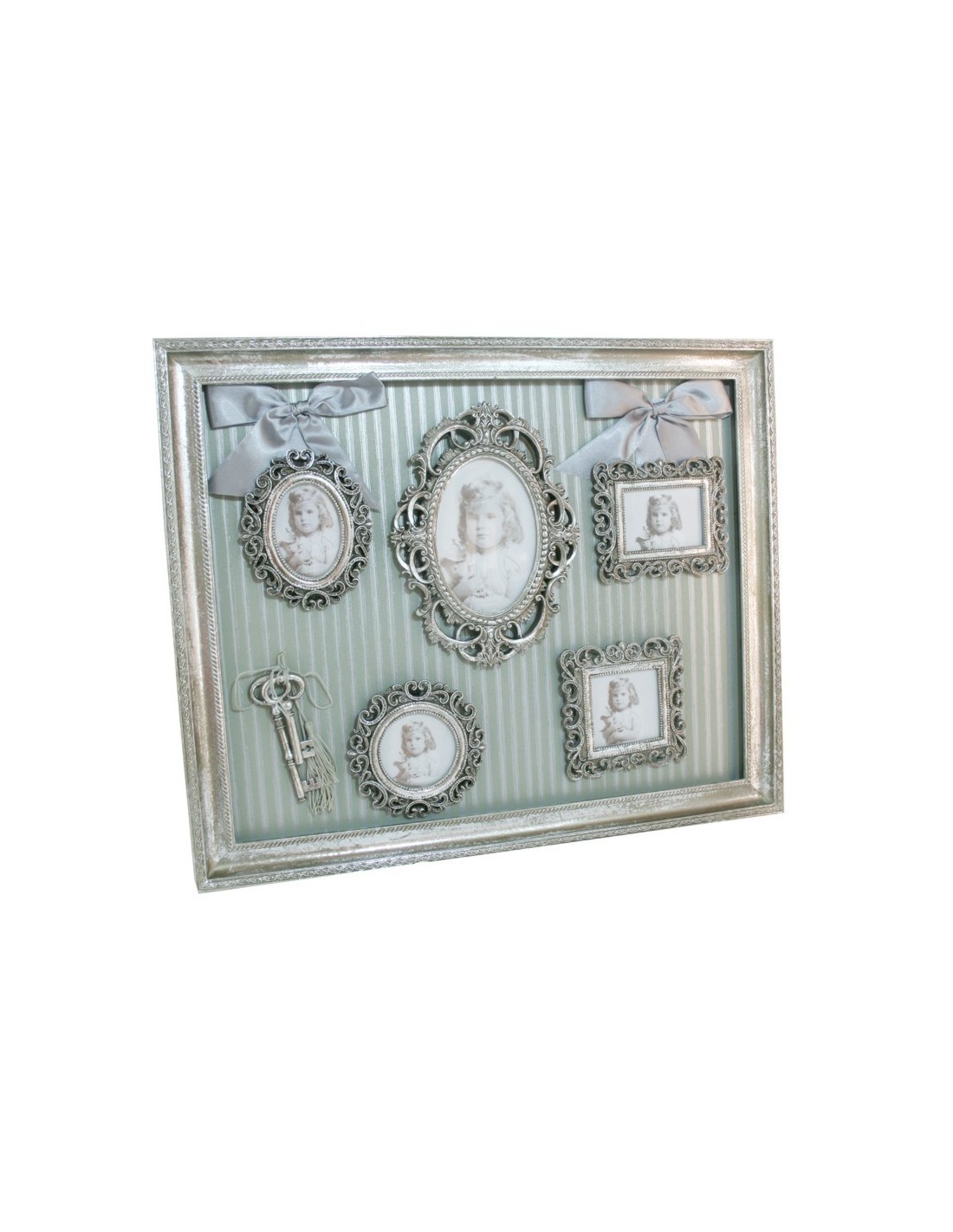 Marco de Madera para Cinco Fotos en Forma Cuadro Estilo Romántico de Color Plata Envejecida. Medidas: 47x4x57 cm.