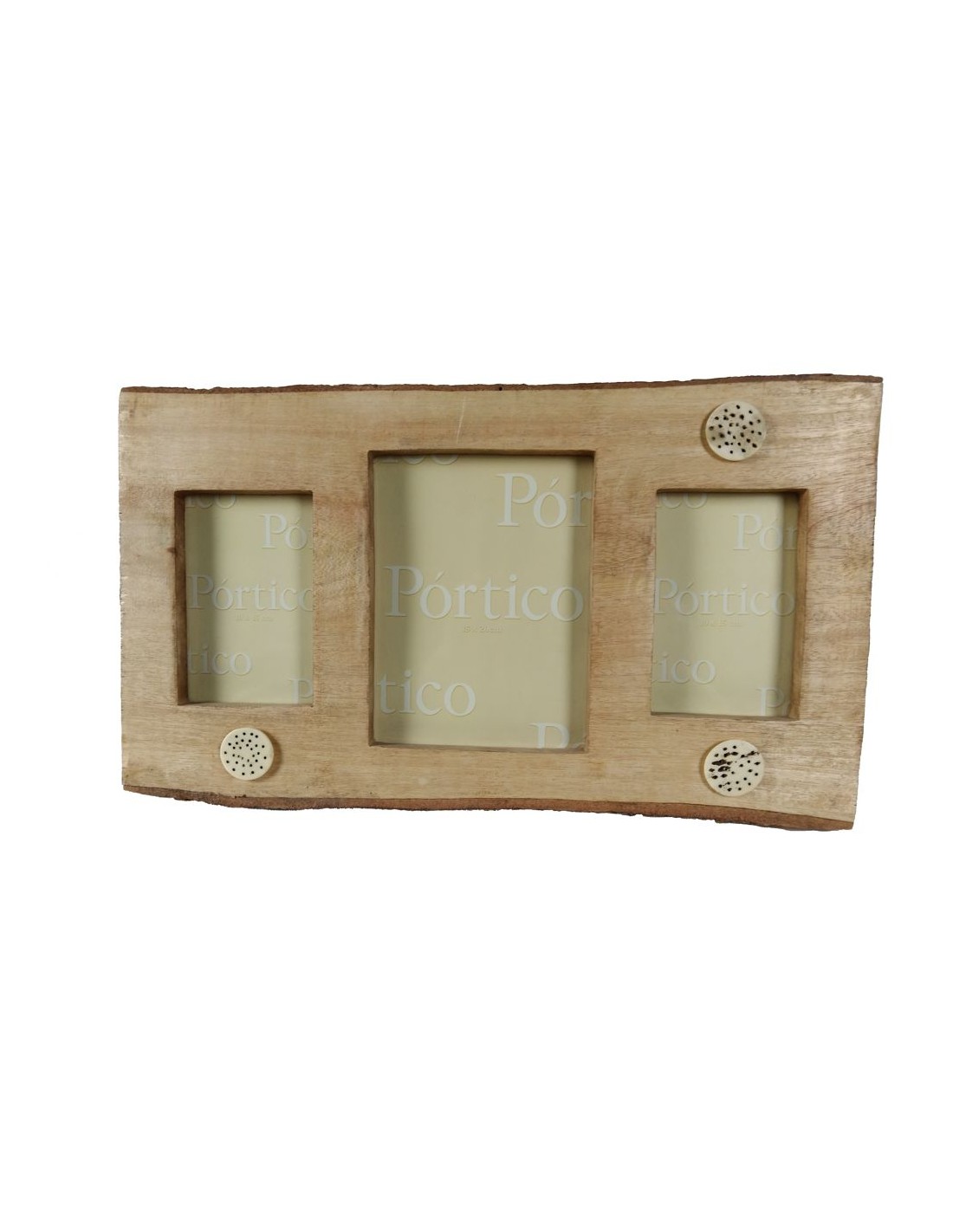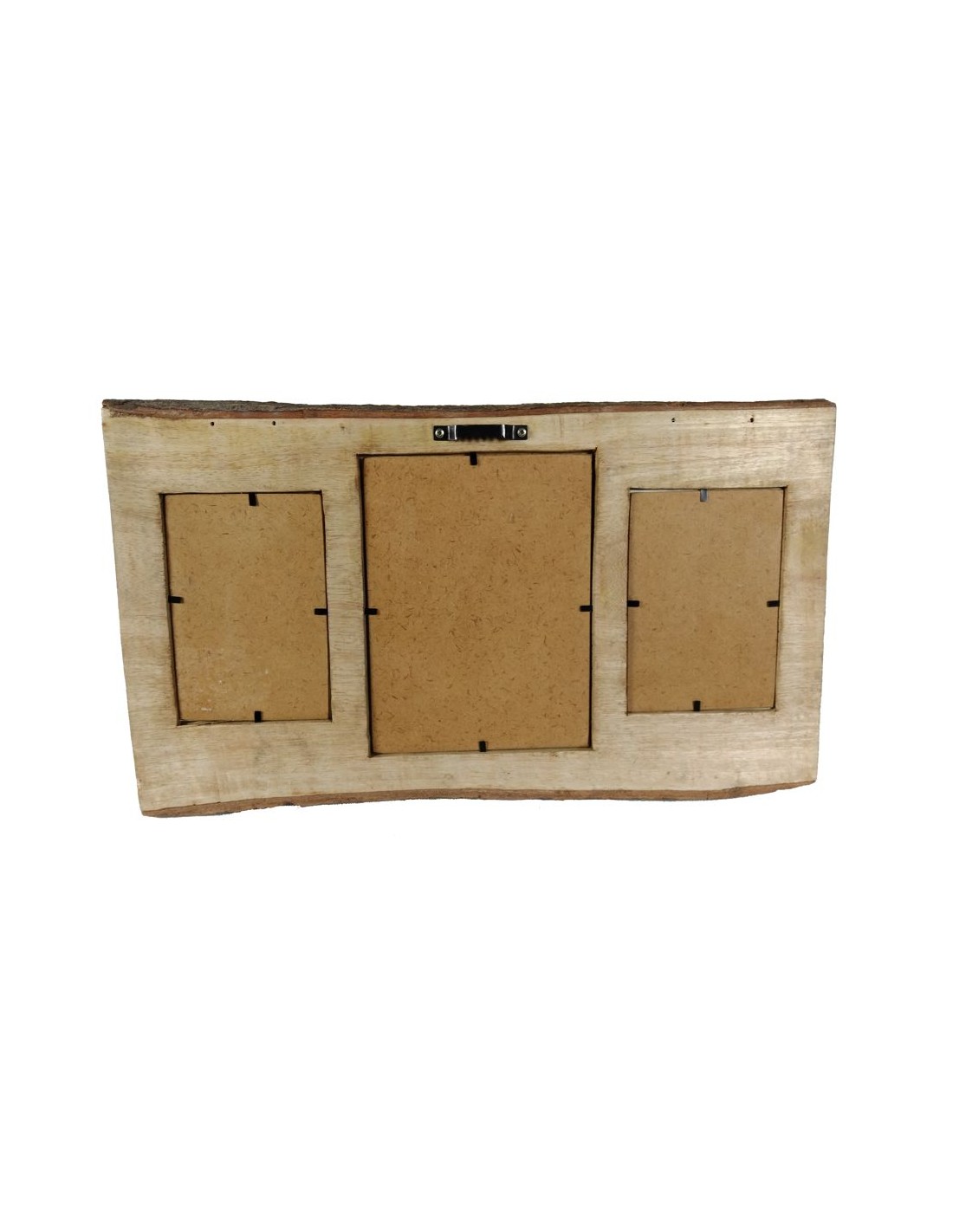 Marco de pared para tres Fotos de madera Maciza Porta Retrato Estilo Vintage Decoración Hogar. Medidas: 27x48x2,5 cm.