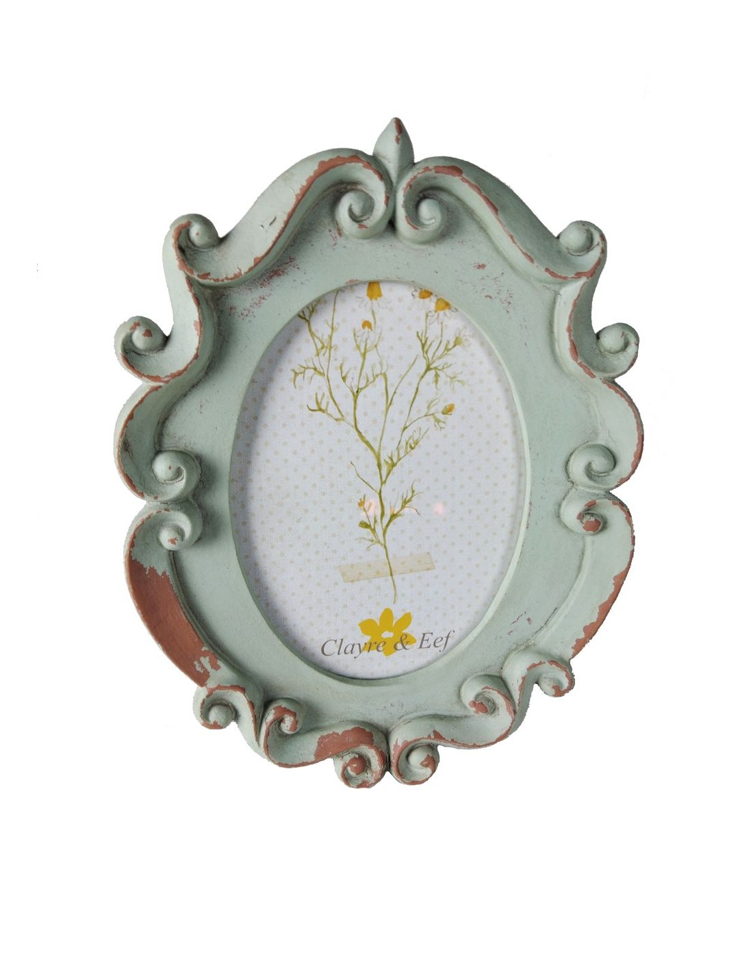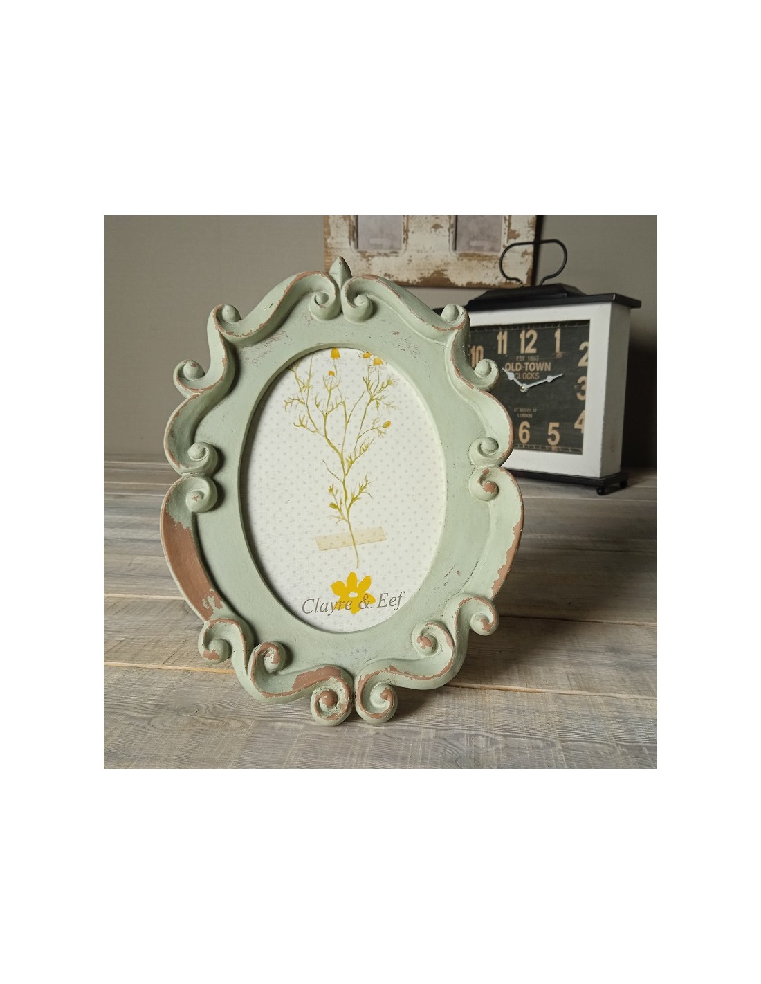 Portarretrato Ovalado para Colgar en Pared y de Sobremesa Estilo Verde Vintage para Fotos de 16x12 cm.Medidas: 25x19 cm.