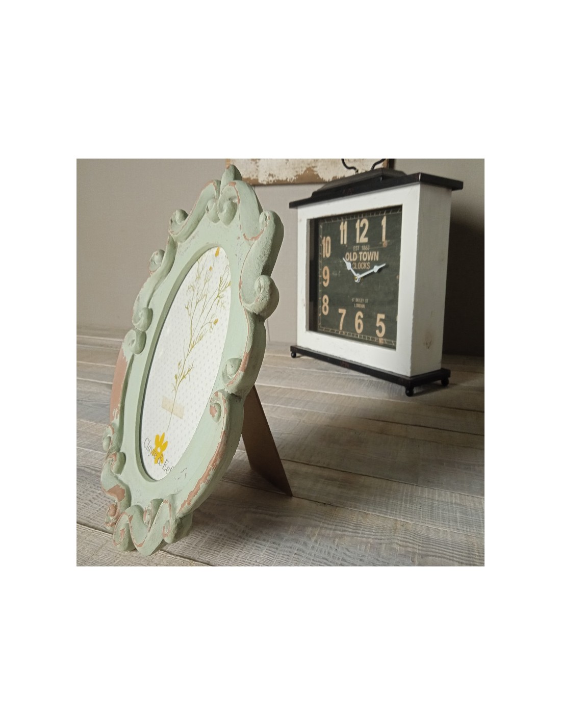 Portarretrato Ovalado Verde Vintage, una pieza que agrega un toque nostálgico a tu hogar. Su diseño ovalado, además de ser perfecto para sobremesas, ofrece la opción de colgarlo, adaptándose a cualquier rincón con elegancia. Este portarretrato es el marco perfecto para tus memorias más queridas.