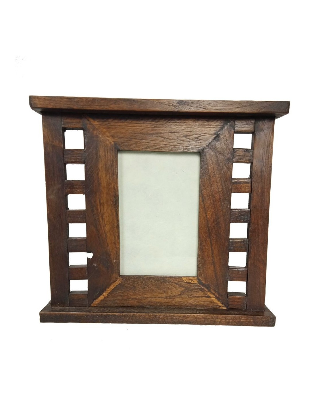 Marco Portafotos de Sobremesa y Pared de Madera Maciza color Nogal Estilo muy Rústico Decoración Hogar. Medidas: 24x26x5 cm.