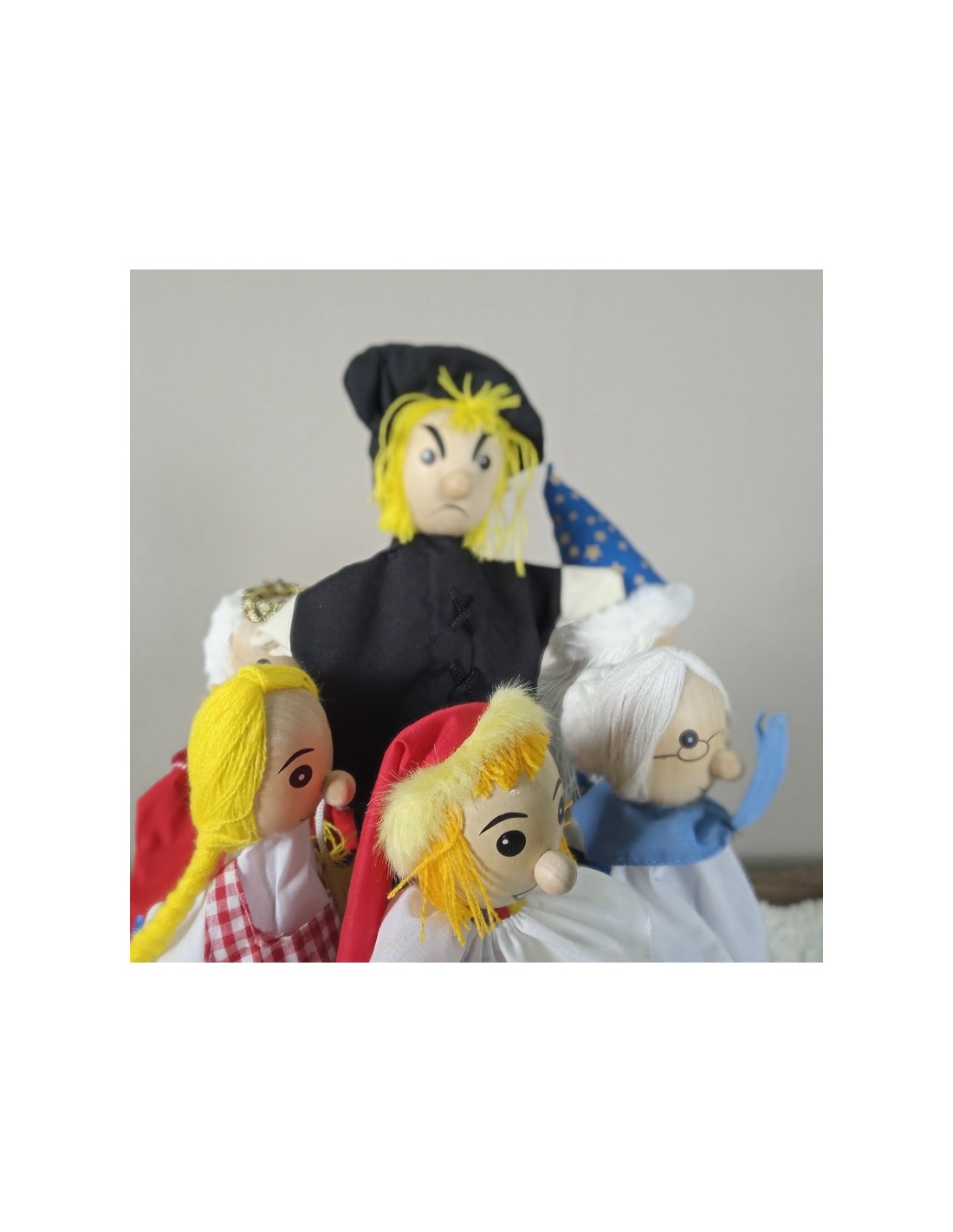 Títere de mano en tela y con cabeza de madera de alegres colores y atuendos. La marioneta es un juego para que el infante exprese sentimientos, opiniones y emociones… y a la vez aprenden a estimular su imaginación y creatividad mientras se juega.