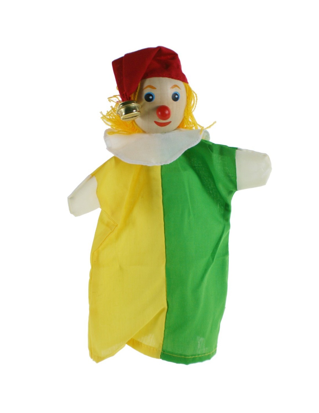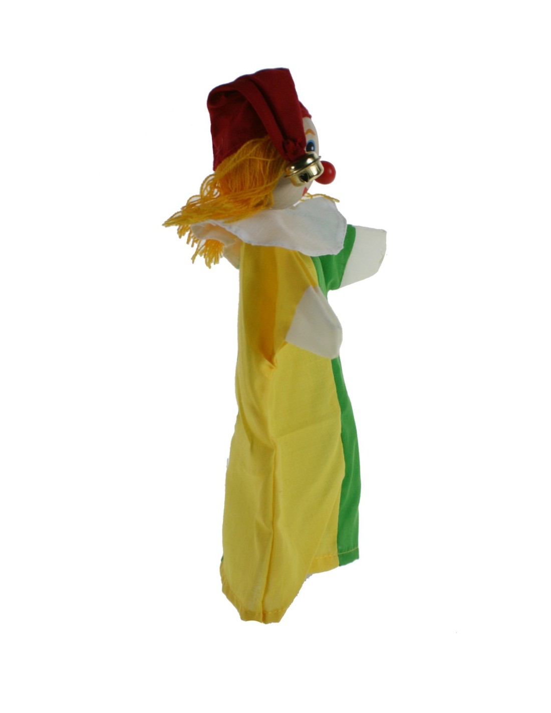 Marioneta de mano modelo Bufón de ropa con la cabeza de madera. Personajes que cobran vida con voz y movimiento al inventar historias fantásticas en las representaciones. Es un juego clásico que permite crear todo un mundo de fantasía y diversión y a la vez desarrollar la inteligencia e imaginación del niño.