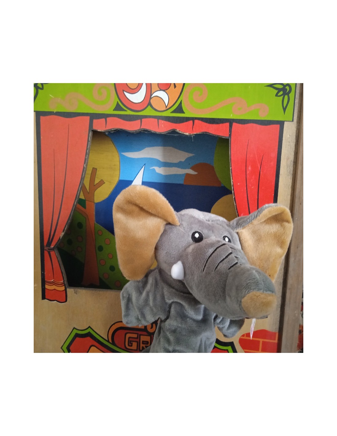 Marioneta de mano modelo Elefante de peluche muy suave. Personajes que cobran vida con voz y movimiento al inventar historias fantásticas en las representaciones. Es un juego clásico que permite crear todo un mundo de fantasía y diversión y a la vez desarrollar la inteligencia e imaginación del niño. También este osito sirve para jugar y acurrucarse.