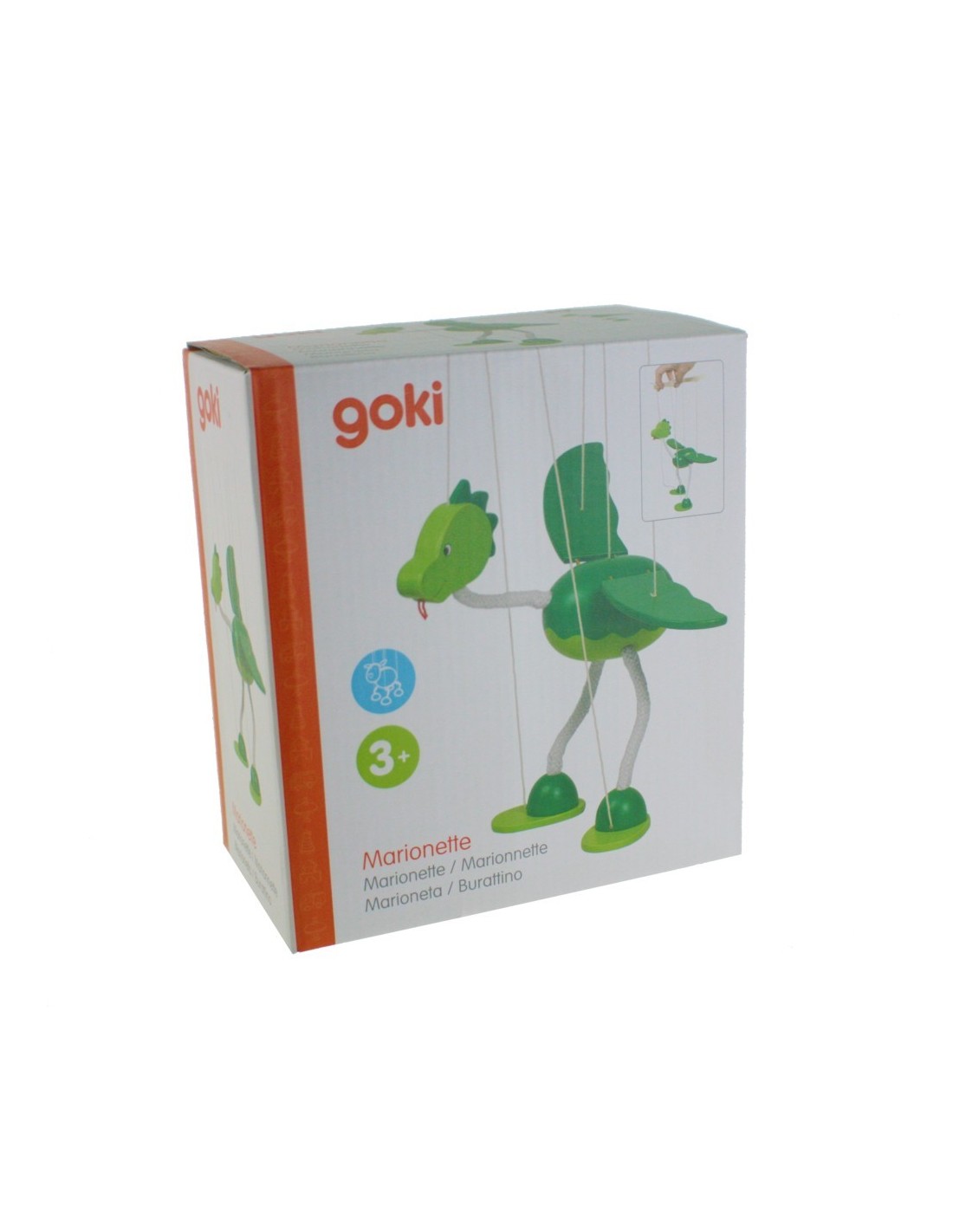 Hechas en madera maciza, resistentes y coloridas, estas marionetas representan dinosaurios simpáticos y alegres. Su diseño detallado y sus articulaciones móviles permiten crear todo tipo de movimientos, lo que ayuda a desarrollar la coordinación y la motricidad fina mientras se juega.