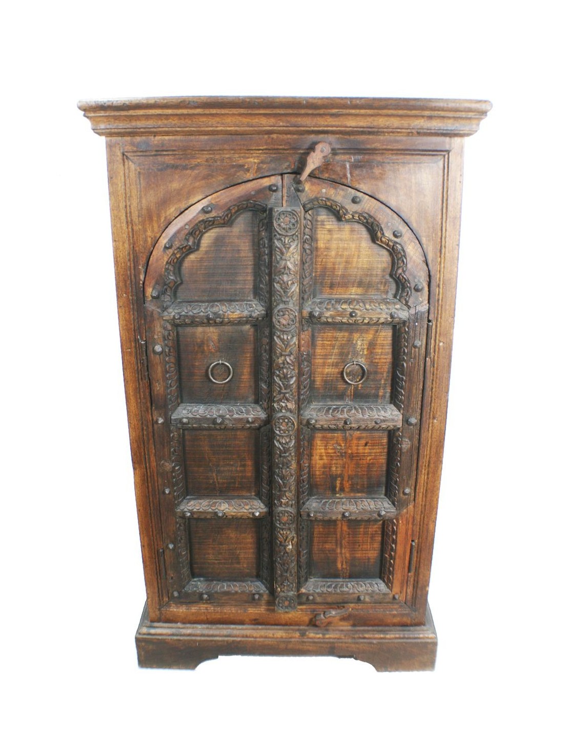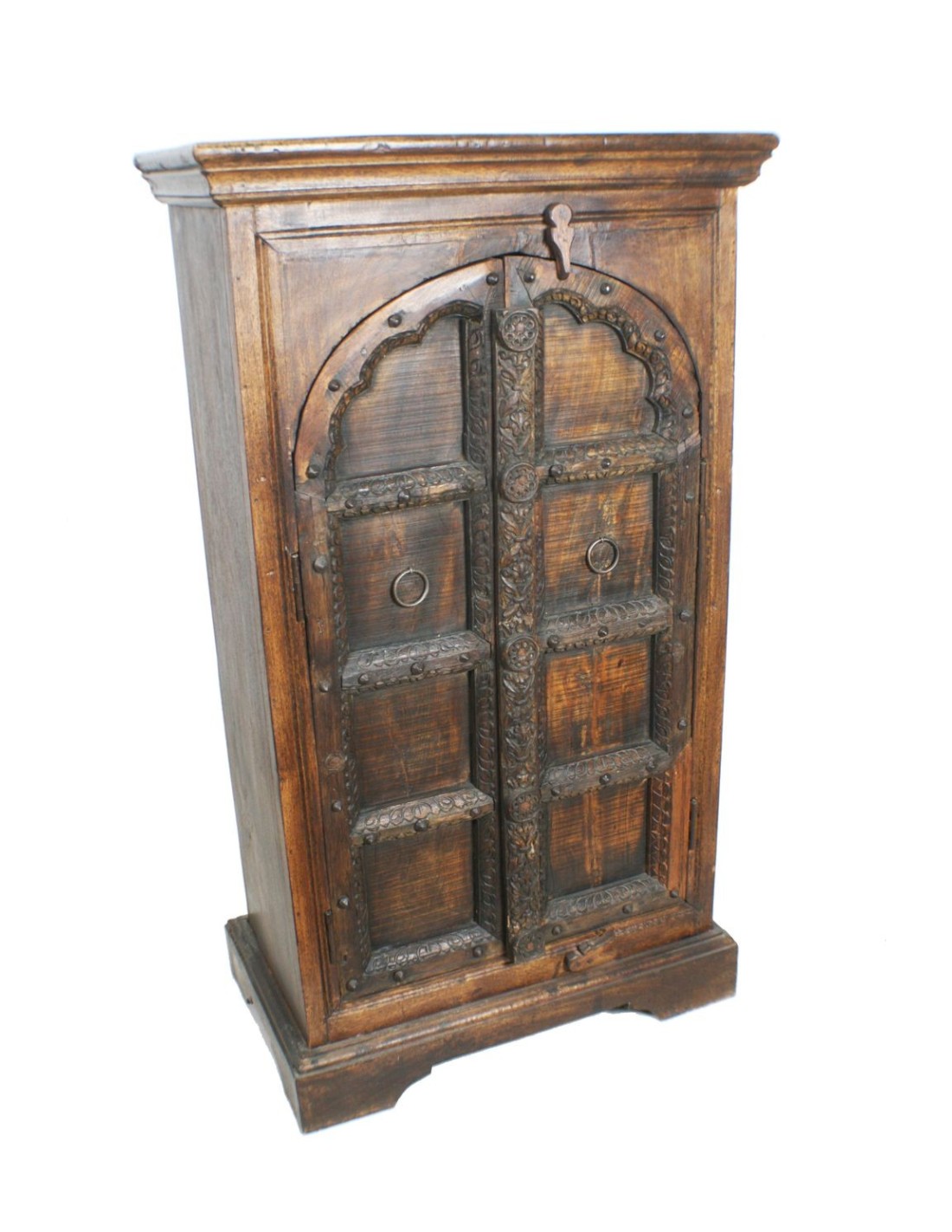 Armario Indio Pequeño de Madera Maciza de Palisandro Hecho en la India con Talla. Medidas: 122x40x70 cm.