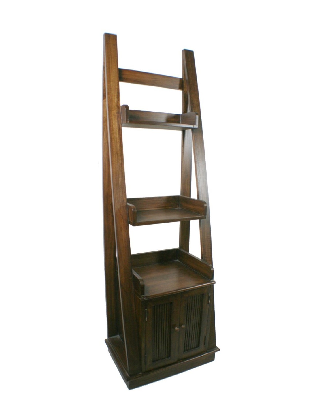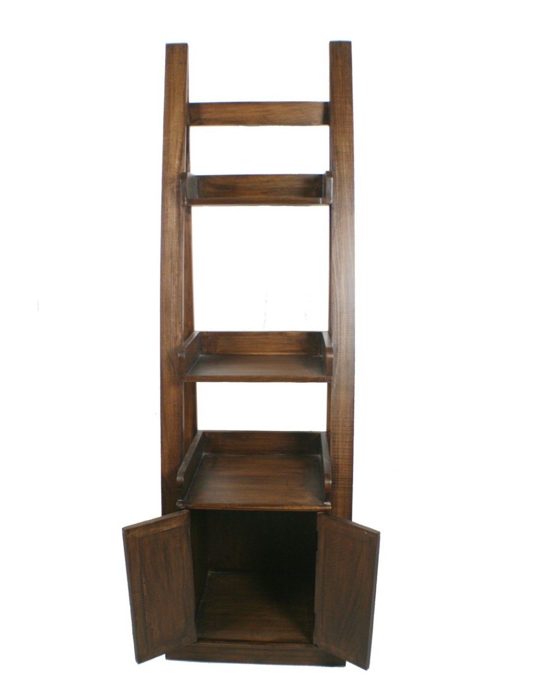Librería Estantería Rústica de Madera Maciza en Forma de Pirámide con Armario Inferior de Dos Puertas. Medidas: 190x40x57 cm.