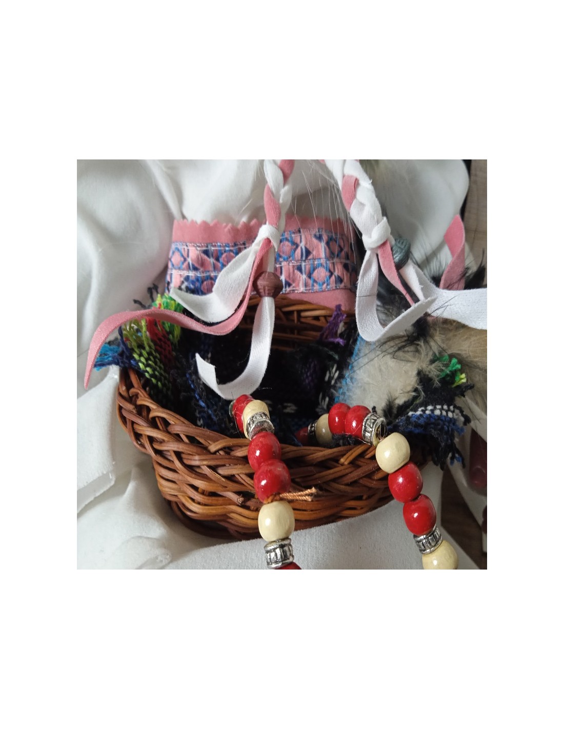 Ideal para coleccionistas, amantes de las muñecas artesanales o para decorar habitaciones infantiles con un toque exótico y natural. Su expresión serena y su vestuario colorido la convierten en un detalle muy especial.