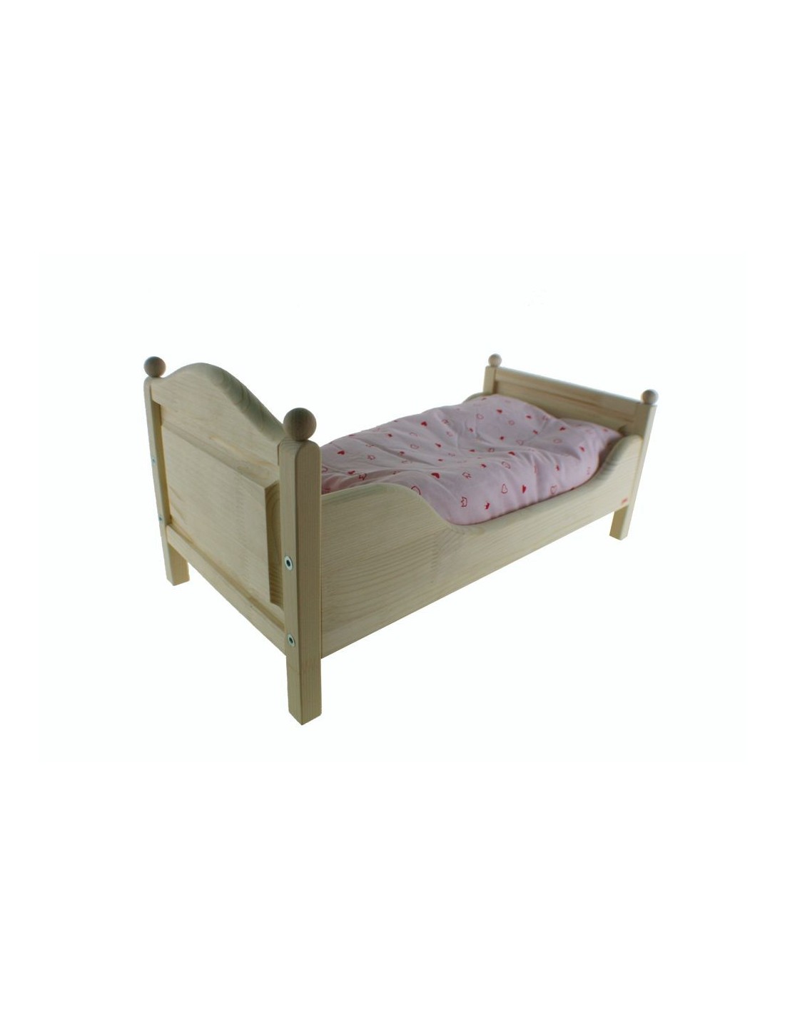 Esta preciosa cama de muñecas está elaborada en madera maciza, destacando por su resistencia y calidez natural. Su diseño clásico y cuidado acabado la convierten en una pieza ideal para acompañar los juegos más tiernos.