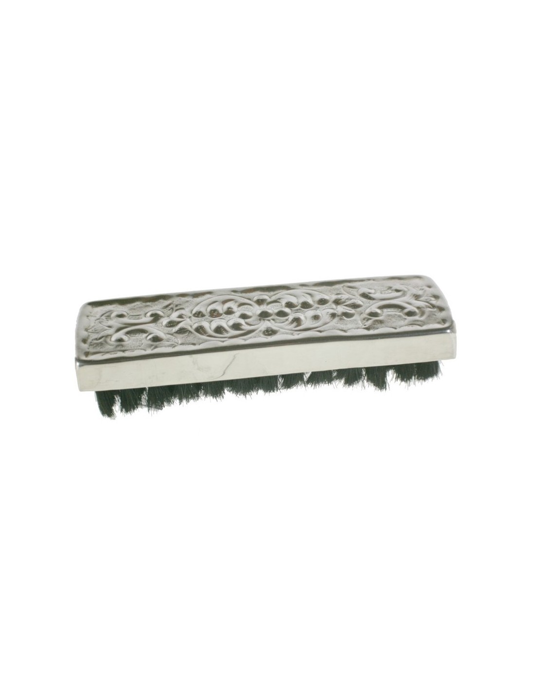 Cepillo para ropa, rectangular con relieve en base de metal plateado estilo vintage ideal para regalo.