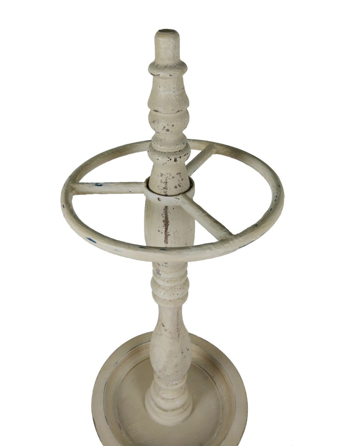 Mueble paragüero de pie de madera torneado y base de metal de color blanco roto envejecido. De estilo vintage. Elegante mueble auxiliar para el recibidor de tu hogar y tener los paraguas y bastones bien ordenados. Un paragüero original y supergrande Un regalo original y atractivo.