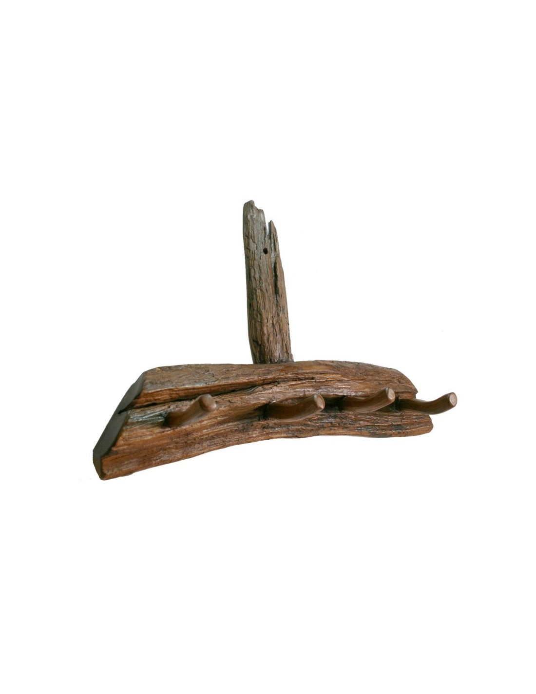Colgador en madera maciza de teka muy rustico de diseño primitivo.
