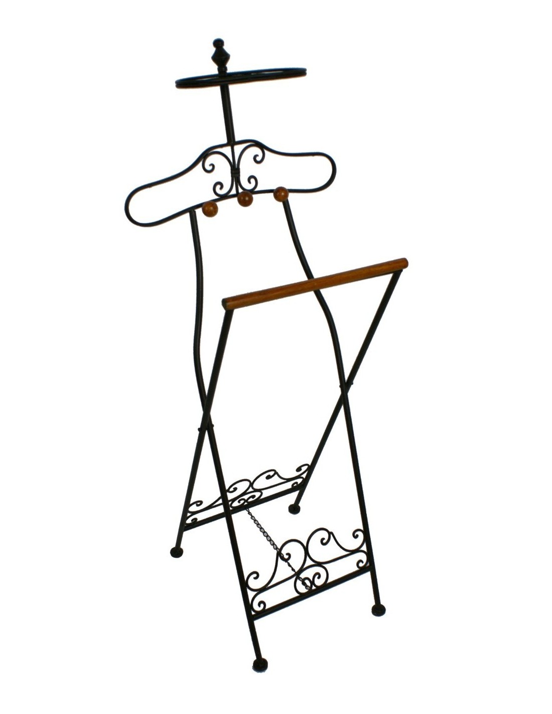 Perchero galán de noche plegable metálico y madera maciza y bandeja para joyas decoración vintage hogar. Medidas: 120X45X45 cm.