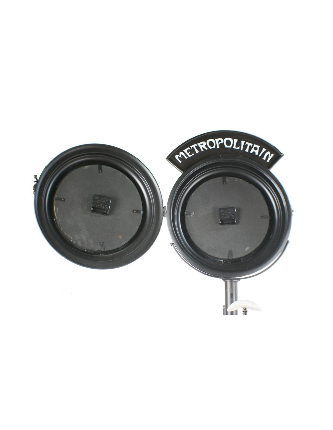 Reloj de columna con esfera a dos caras realizado en metal color negro de estilo muy vintage industrial se adapta a cualquier decoración que tengas en tu hogar, necesitas un buen espacio para lucirlo por su tamaño ya que también hace la función de colgador con cuatro ganchos en porcelana. Un reloj muy decorativo y atrevido. Ideal para casa, recepción, hotel, bar, oficina…..