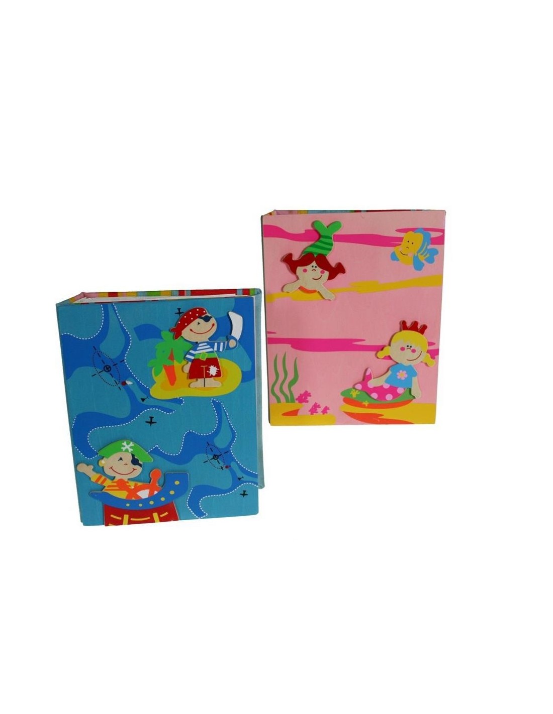 Álbum fotos de color rosa con figuras de hadas. Medidas: 17x14x5 cm.