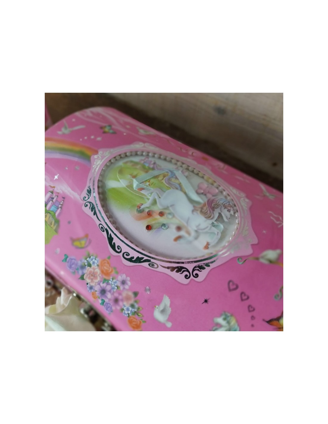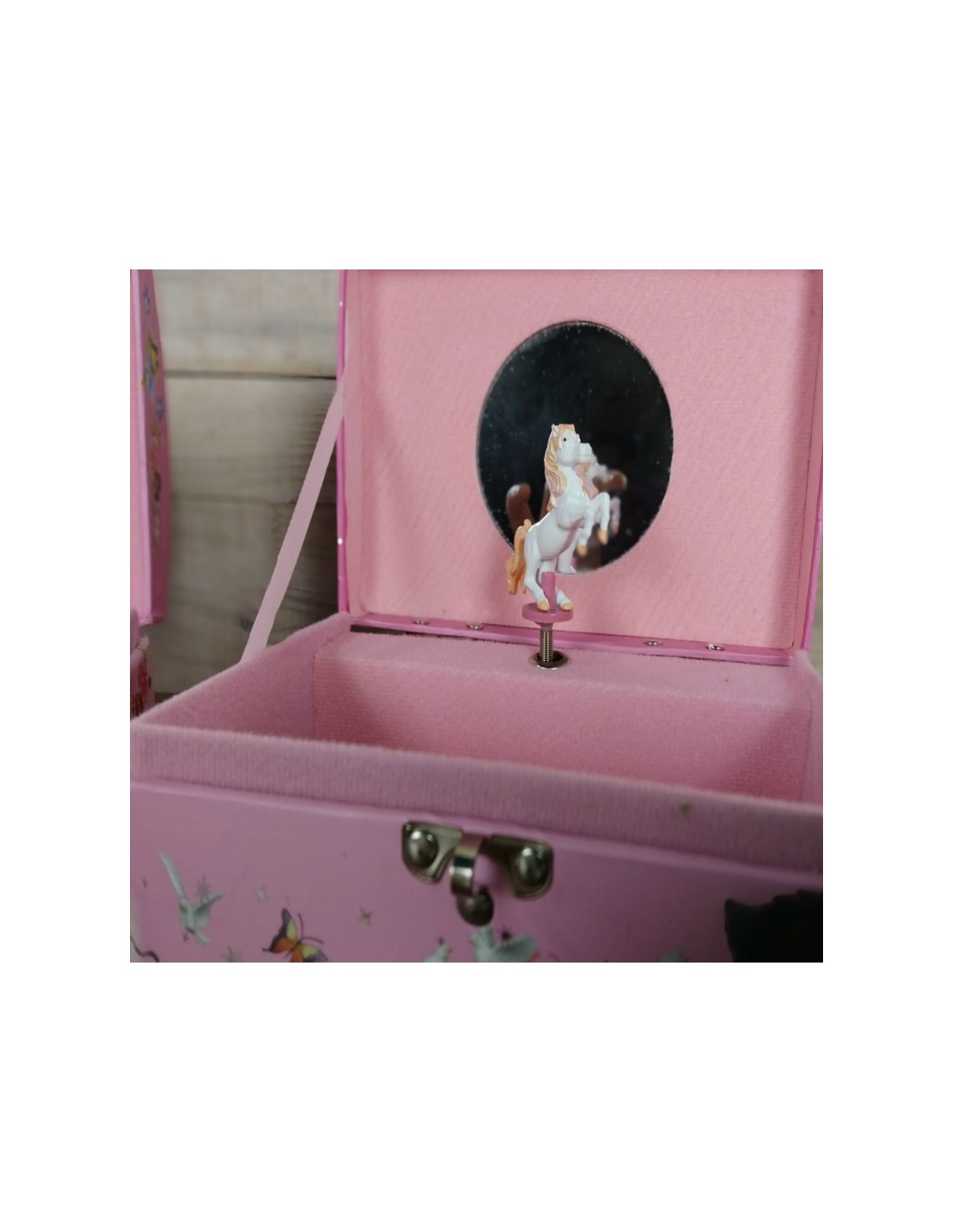 Caja Musical Infantil Joyero Color Rosa con Caballito Girando y Espejo. Medidas: 10x16 cm.