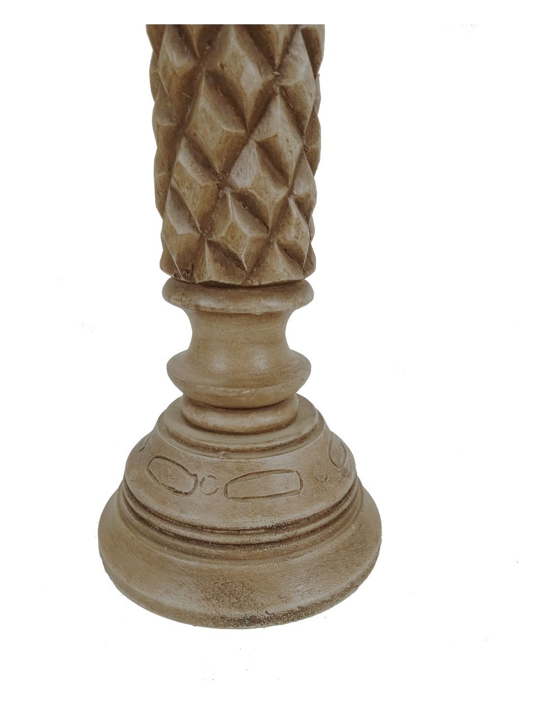 Portavela grande estilo candelabro de madera tallada para vela de Ø8 cm, decoración hogar, terraza, jardín. Medidas: 37xØ 12 cm.