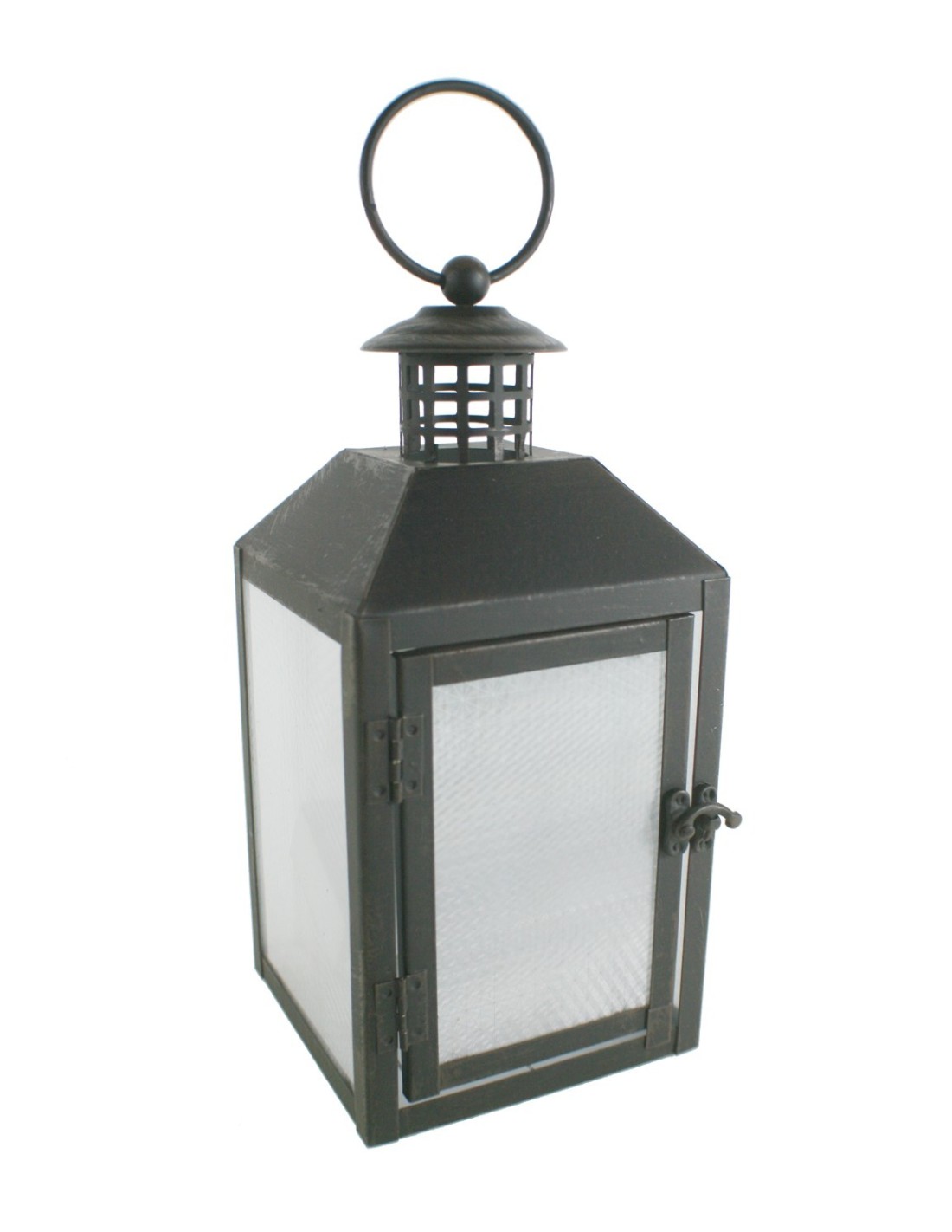 Farol LED negro de metal con asa de agarre y para colgar decoración hogar estilo clásico . Medidas: 30x12x12 cm.