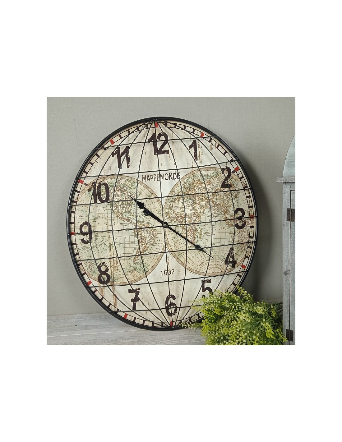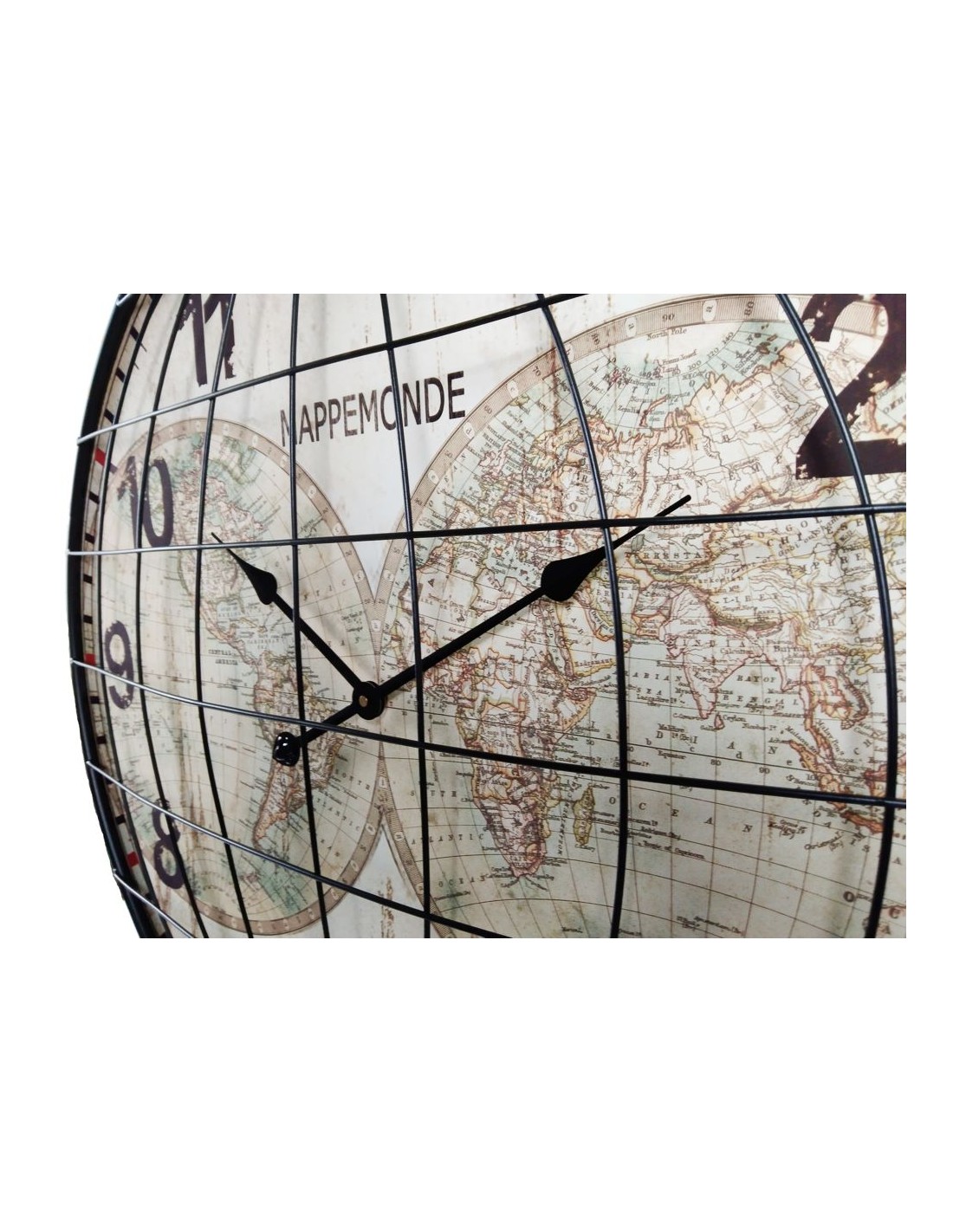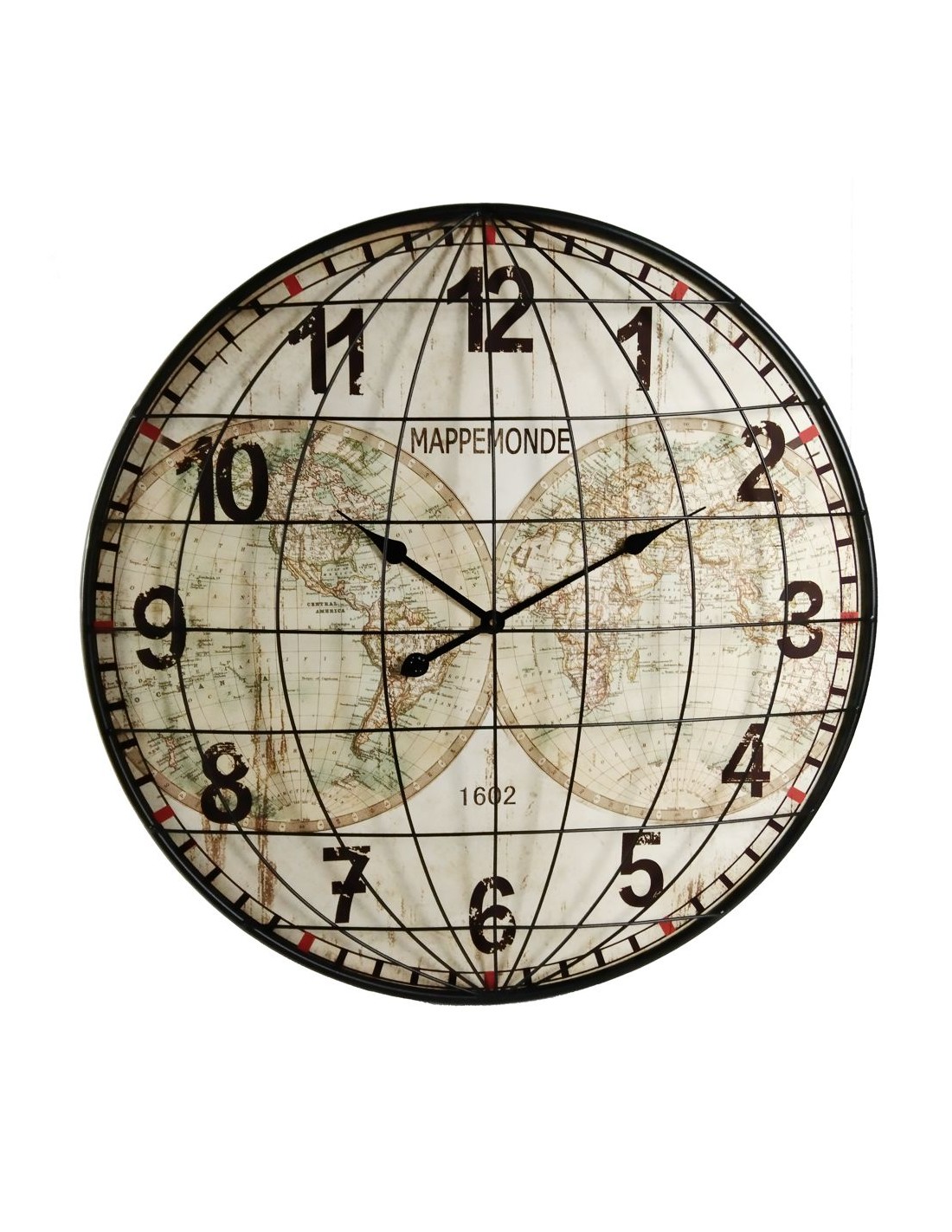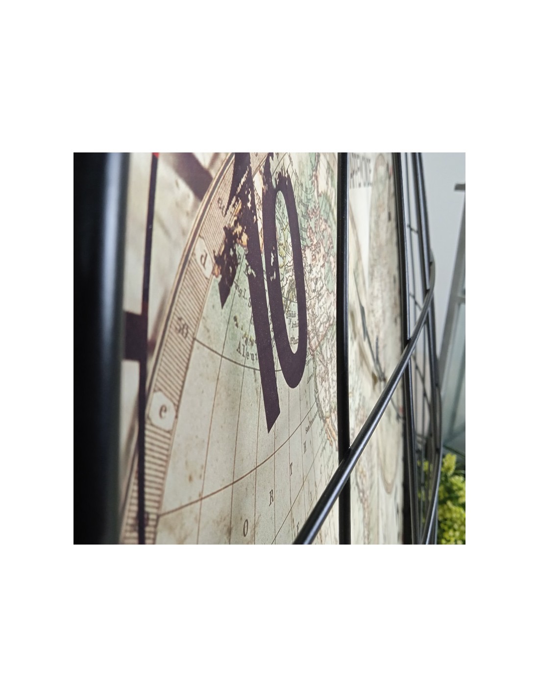 Añade un toque de distinción a tu hogar con este gran reloj de pared decorativo. Este reloj de metal presenta números grandes y un diseño único con un dibujo de mapamundi y una rejilla abombada. Es la pieza perfecta para agregar personalidad a cualquier habitación y para mantener el tiempo con estilo.