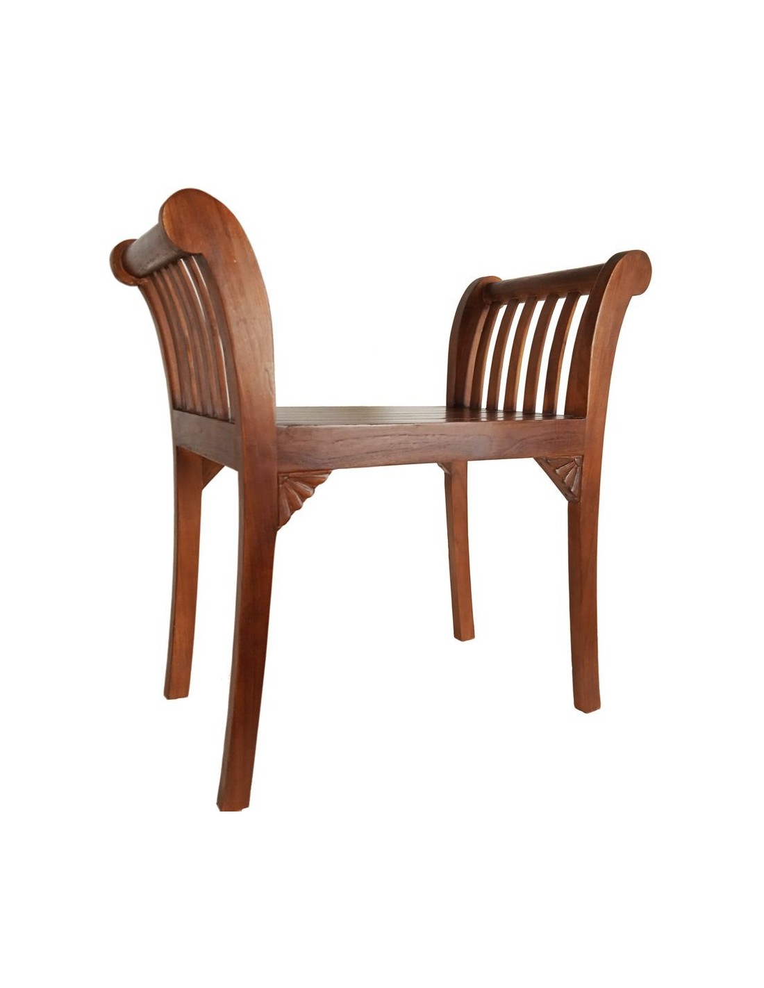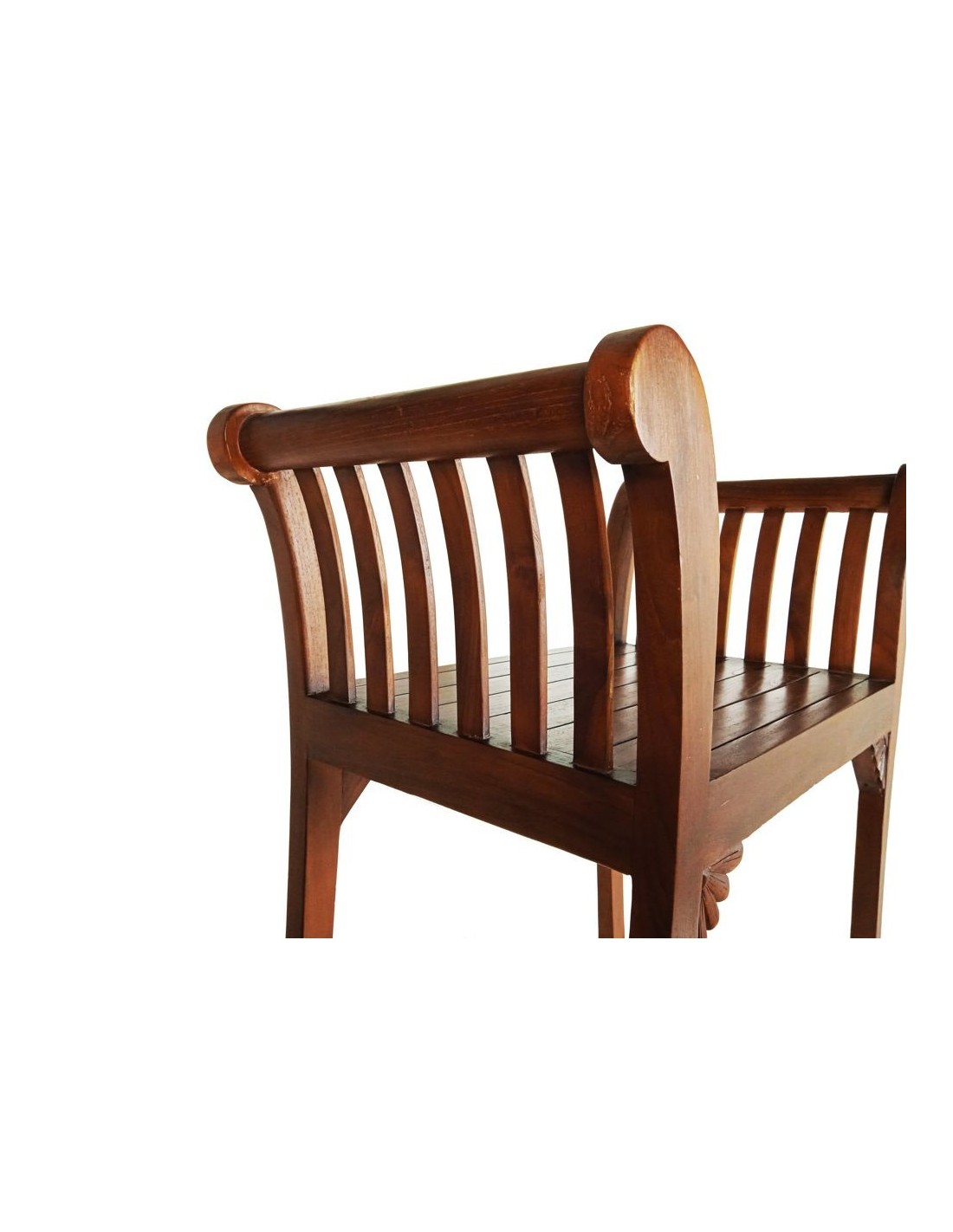 Banqueta de Madera Maciza de Teka de Color Nogal con Talla Complemento Hogar Estilo Rústico.Medidas:76x74x40 cm.