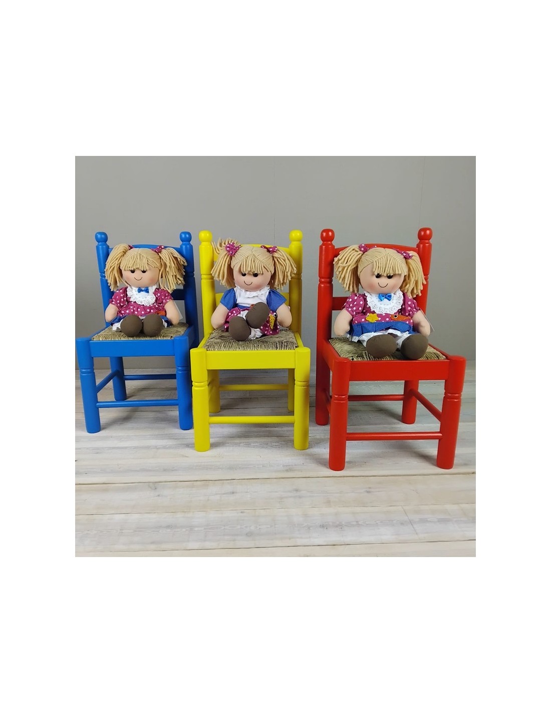 Esta sillita de madera de pino con asiento de anea es una versión infantil de las sillas de toda la vida. Su tamaño y resistencia la hacen ideal para acompañar a los niños en sus momentos de juego, lectura o actividades creativas.