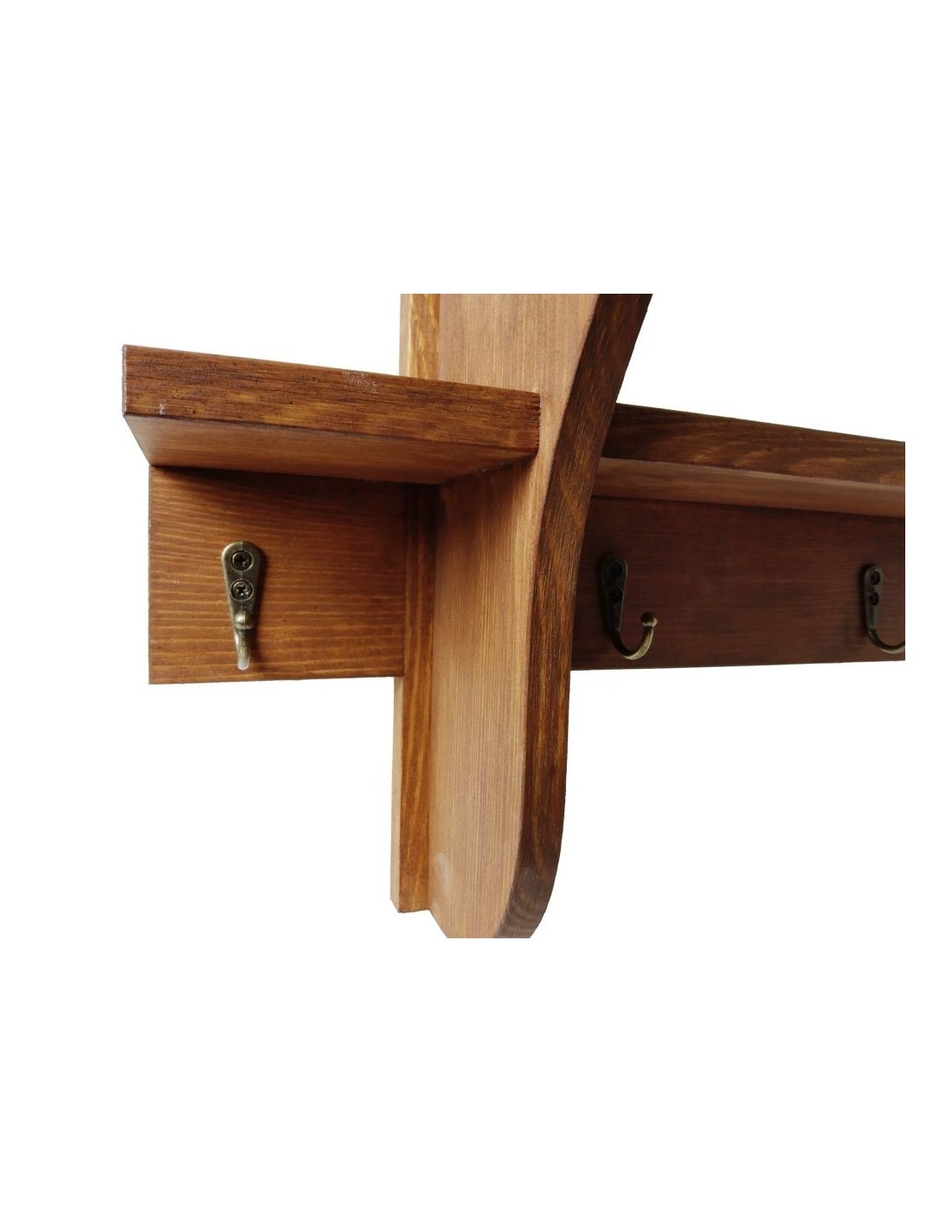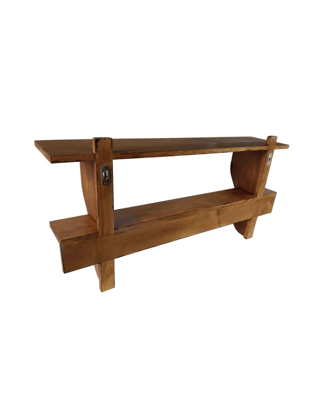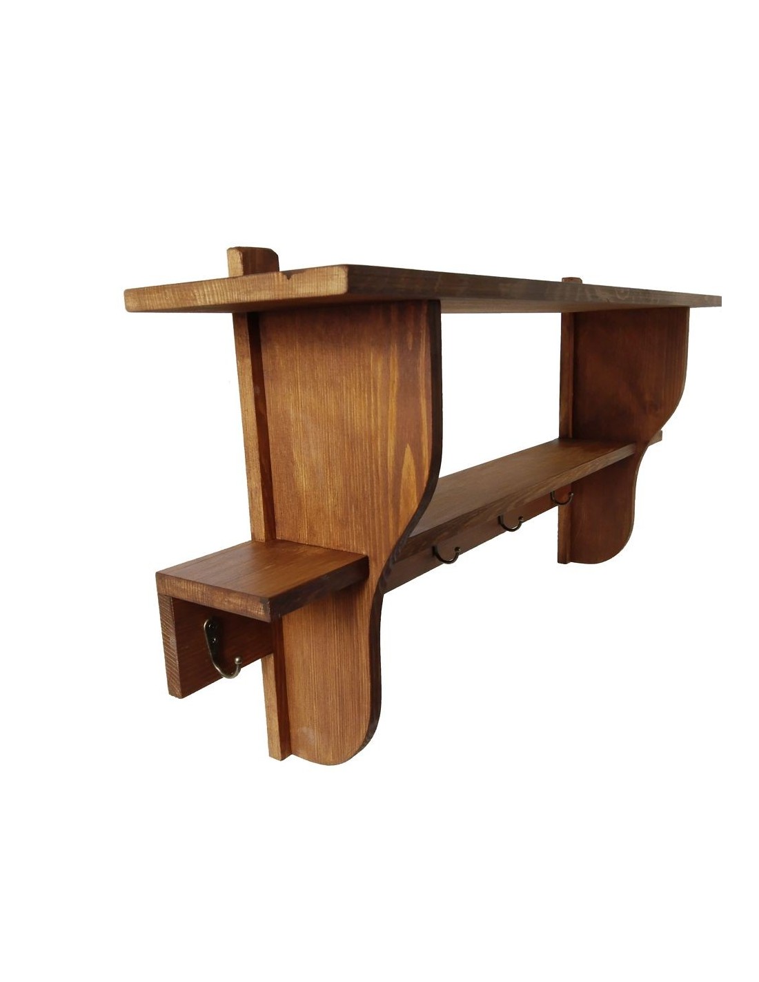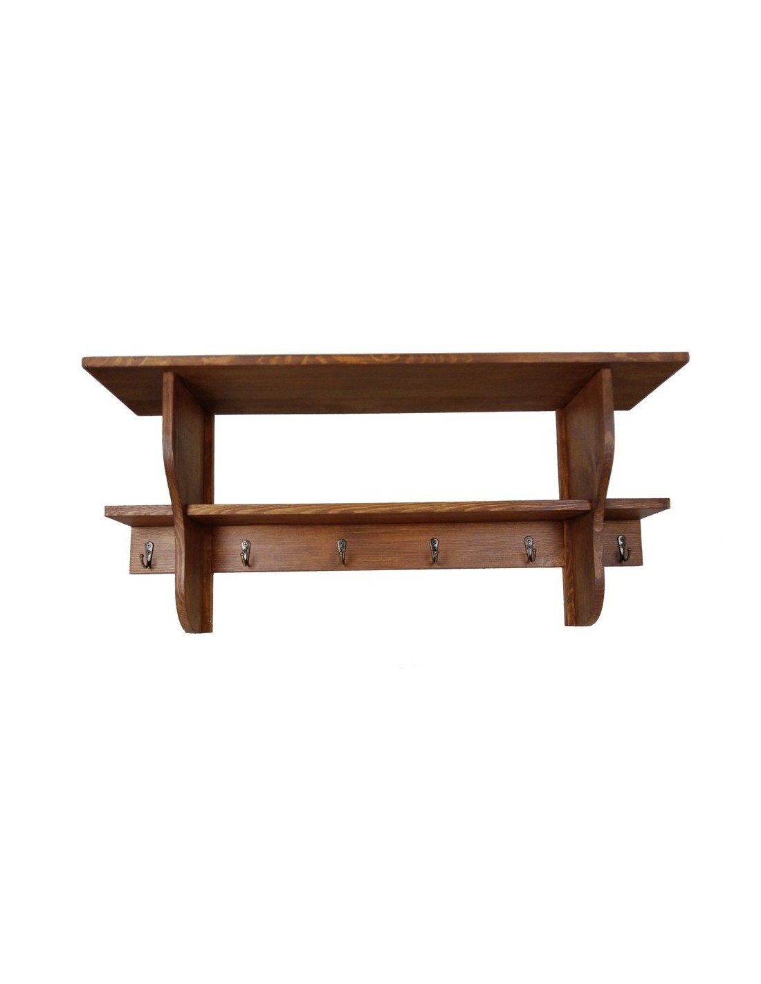 Estantería de dos baldas y seis colgadores de estilo rústico. Un mueble auxiliar que se puede colocar a cualquier estancia de tu hogar. Esta estantería da un ambiente muy hogareño.