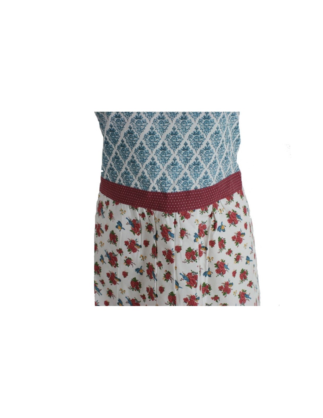 Delantal dos colores para cocina con peto ajustable estilo vintage y diseño flores. Medidas: 85x70 cm.
