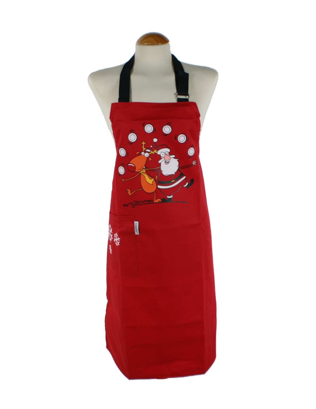 Delantal para cocina con diseño Navideño Santa Claus y Reno de color rojo ideal regado de Navidad. Medidas: 80x65 cm.