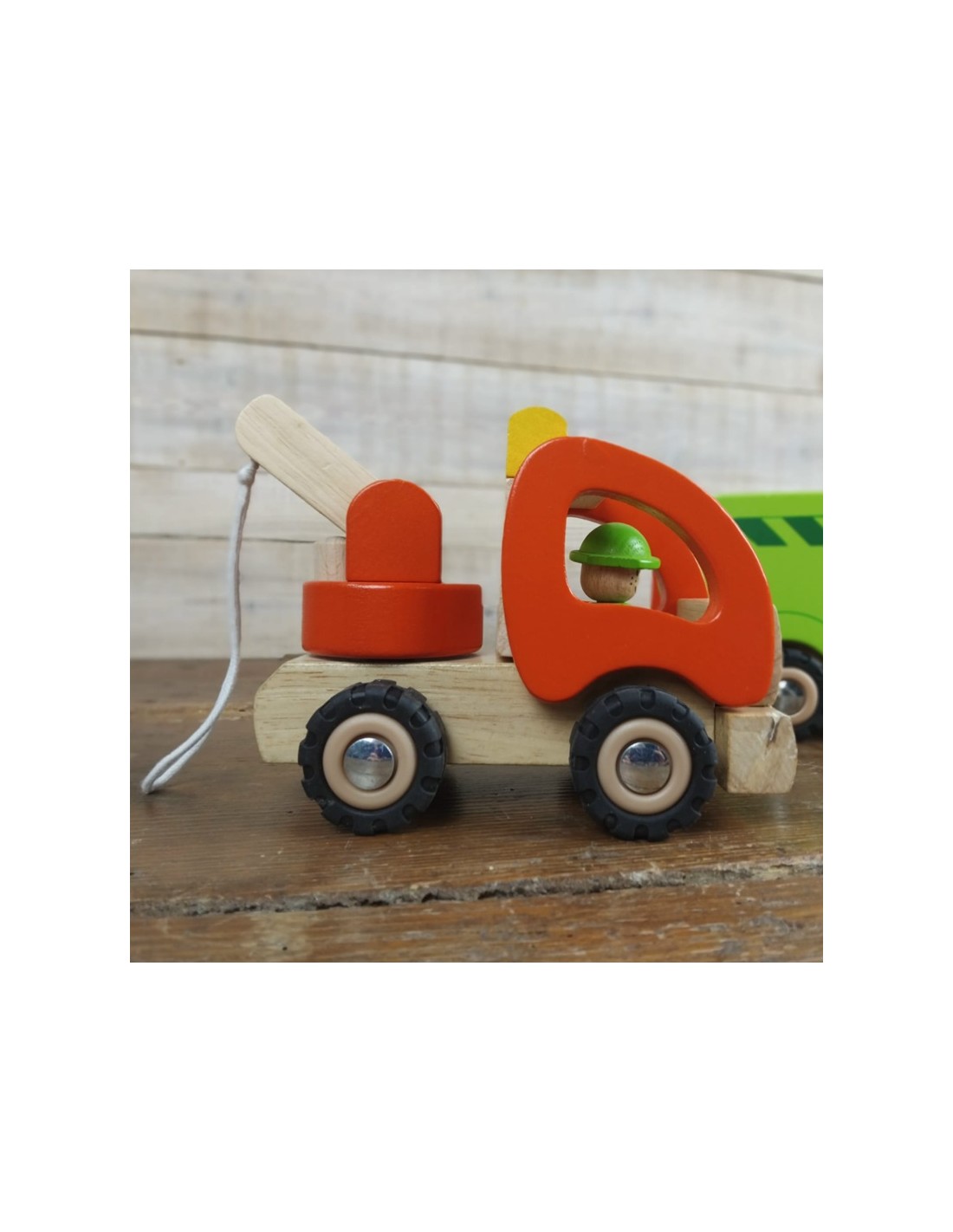 ¡El Camión Grúa de Madera que levanta cualquier aventura! Este camión grúa de madera maciza viene con su propio maquinista, listo para ayudar en las misiones de rescate y construcción. Ideal para niños y niñas con grandes ideas y ganas de imaginar.