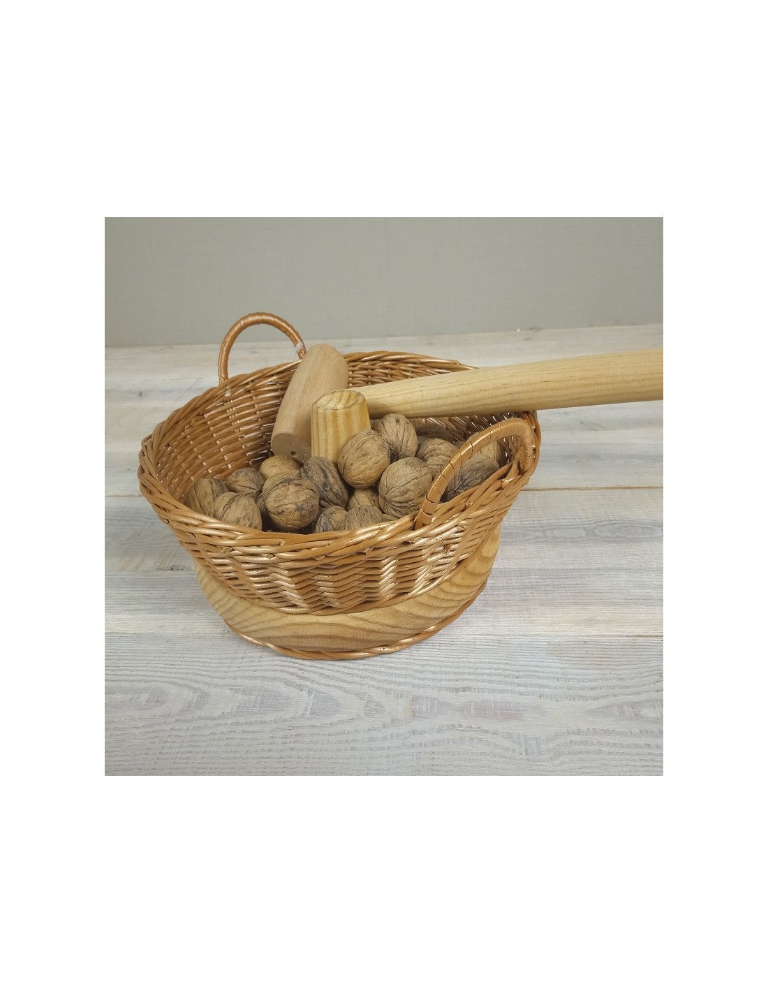 Solida cesta de mimbre con suela de madera especialmente indicada para cascanueces. Se suministra con mazo y sin garantía de picarte los dedos.