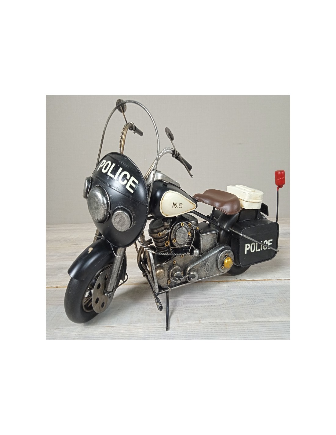 Motocicleta Grande de Metal de Policía Moto Retro Vehículo para Coleccionistas y Decoración Hogar. Medidas: 21x37x12 cm.