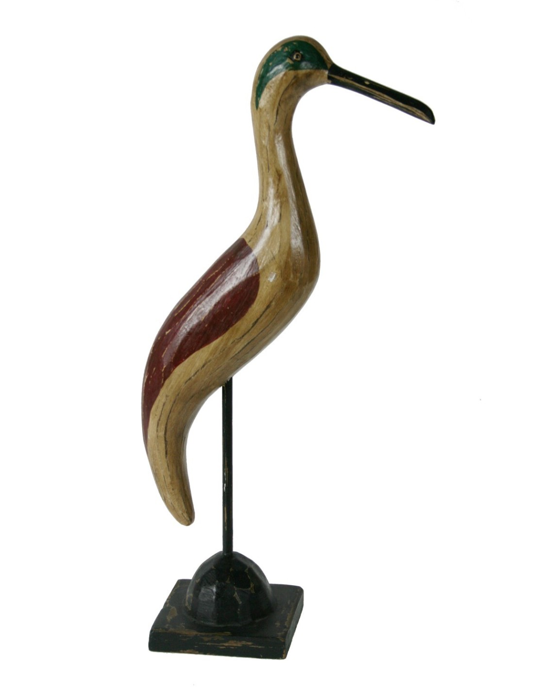 Figure décorative mouette en bois massif avec piédestal en métal. Mesures: 44x10x17 cm.