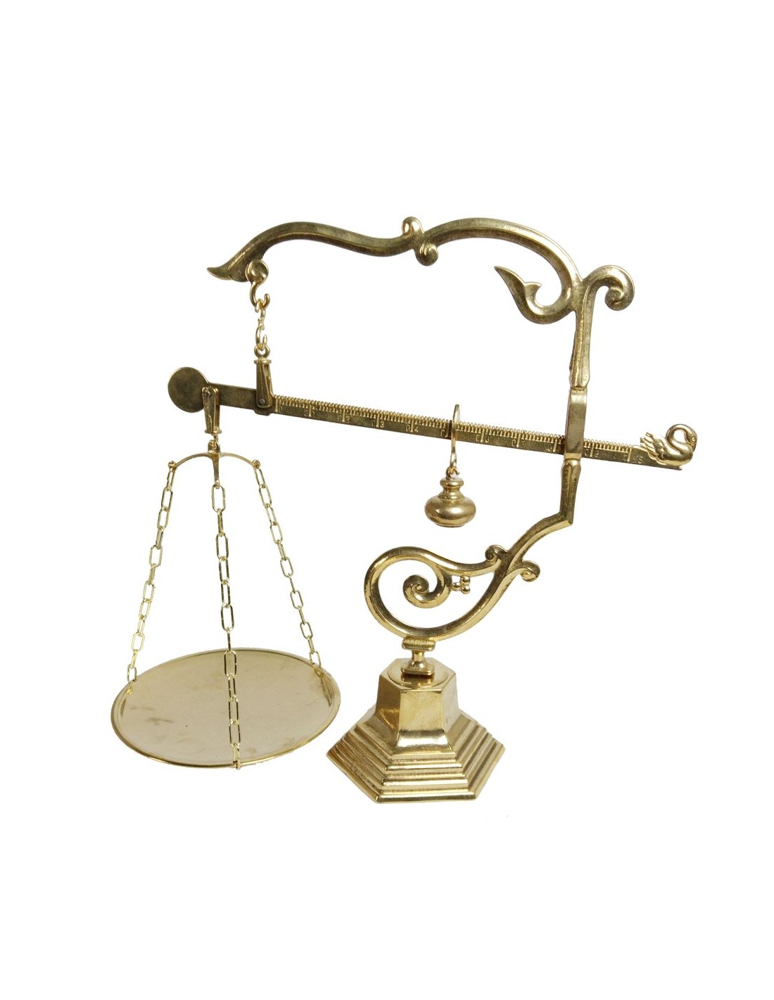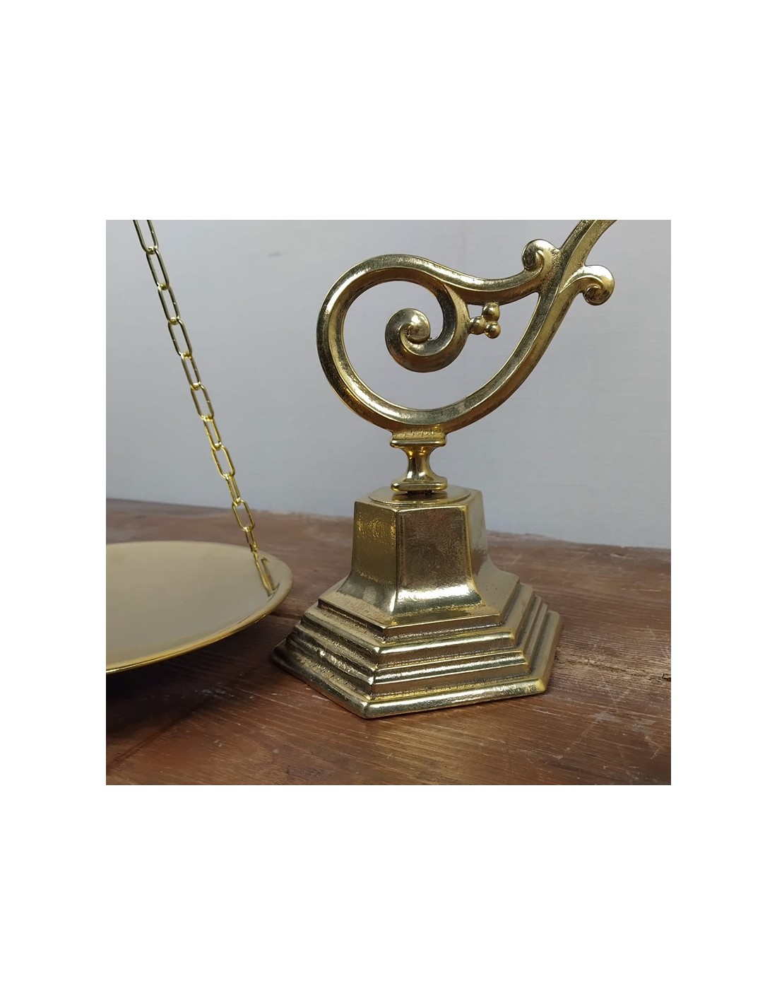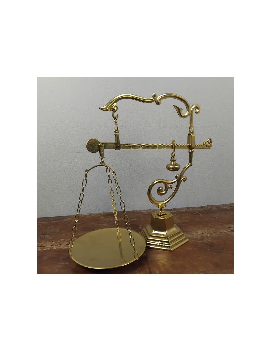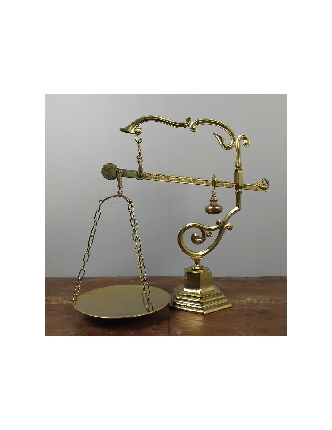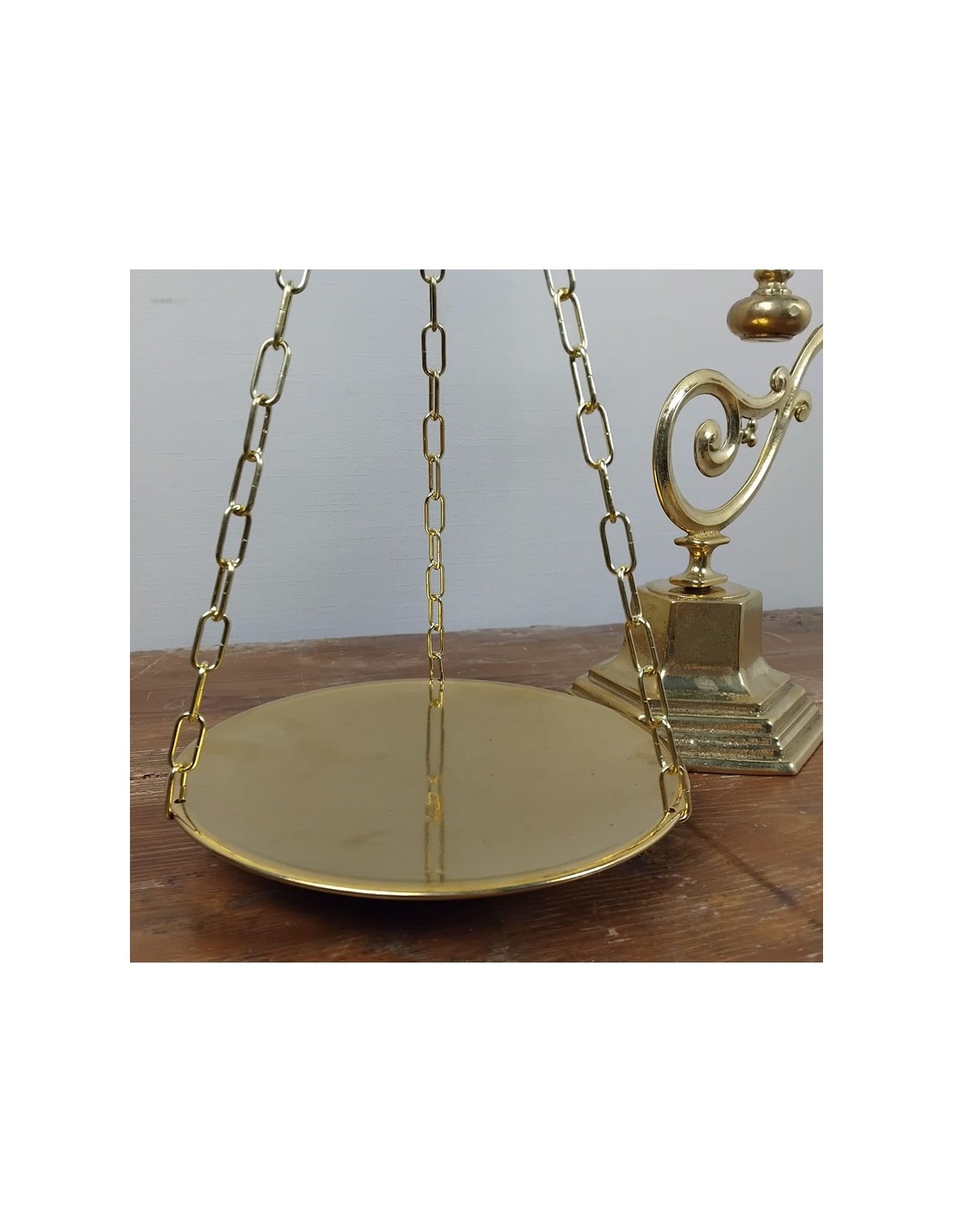 Balance décorative ancienne en laiton doré, style vintage, classique ou institutionnel. Dimensions : 41 x 44 x 19 cm.