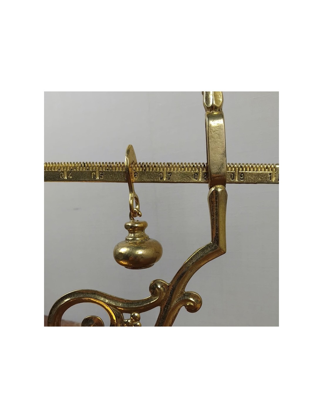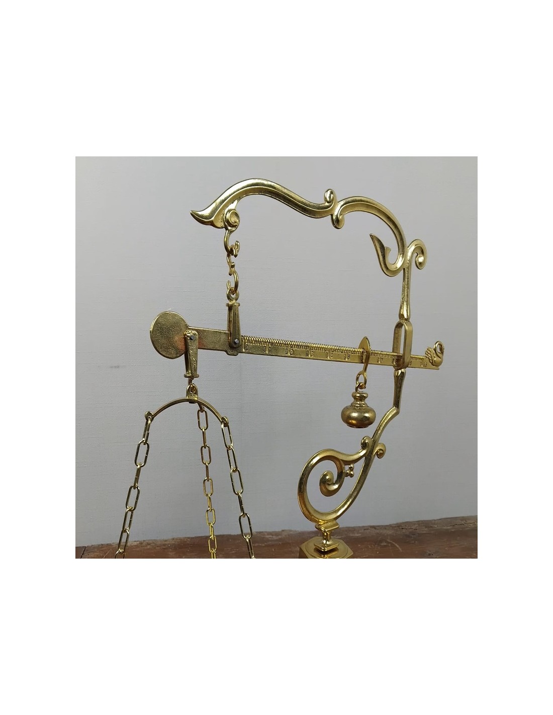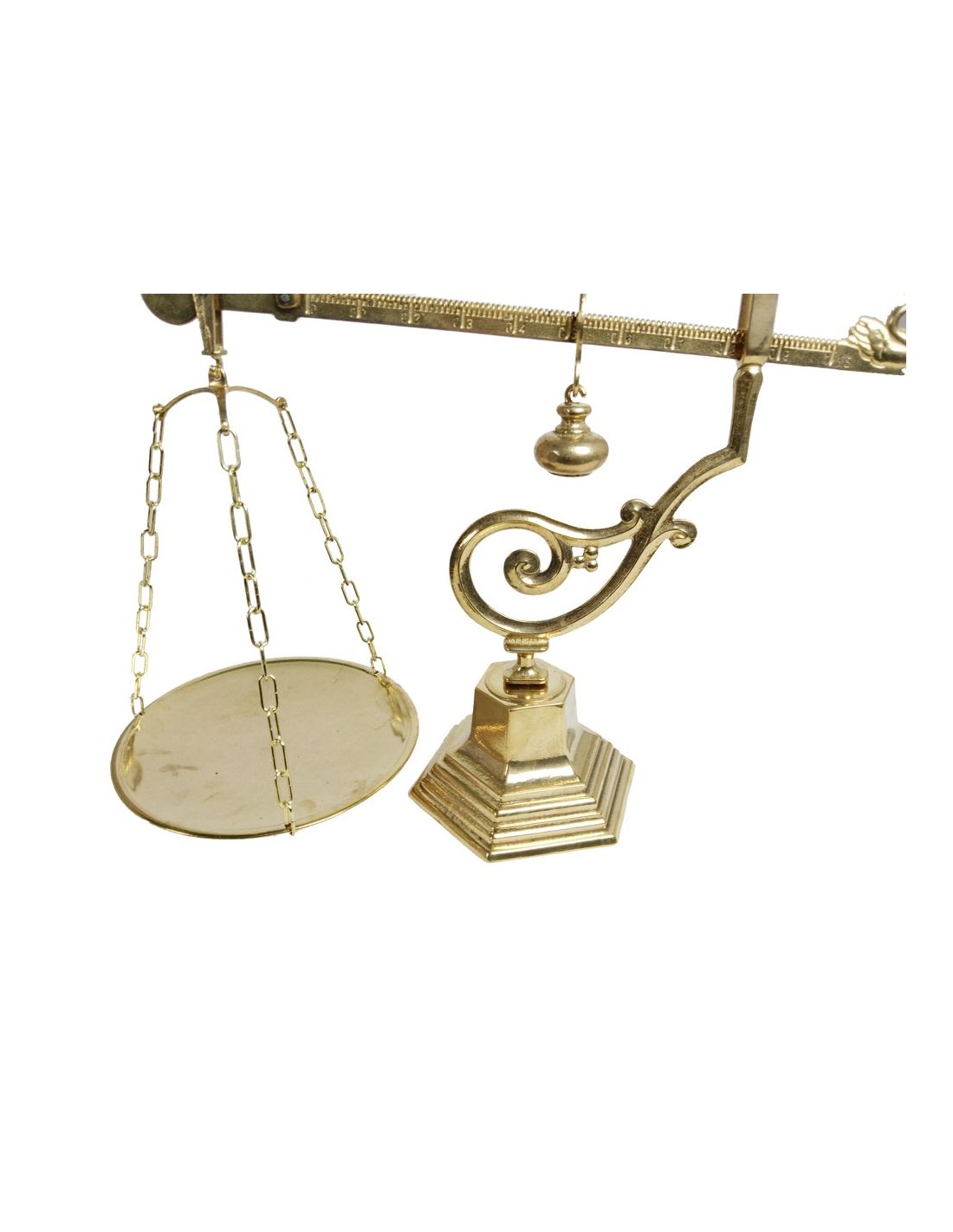 Cette balance ancienne de style romain est fabriquée en laiton doré avec une finition brillante. Un objet décoratif qui évoque l'élégance, la tradition et l'équilibre. Avec sa forme classique et ses ornements soignés, elle est idéale pour ajouter du caractère à une bibliothèque, un bureau, une bibliothèque ou un salon.