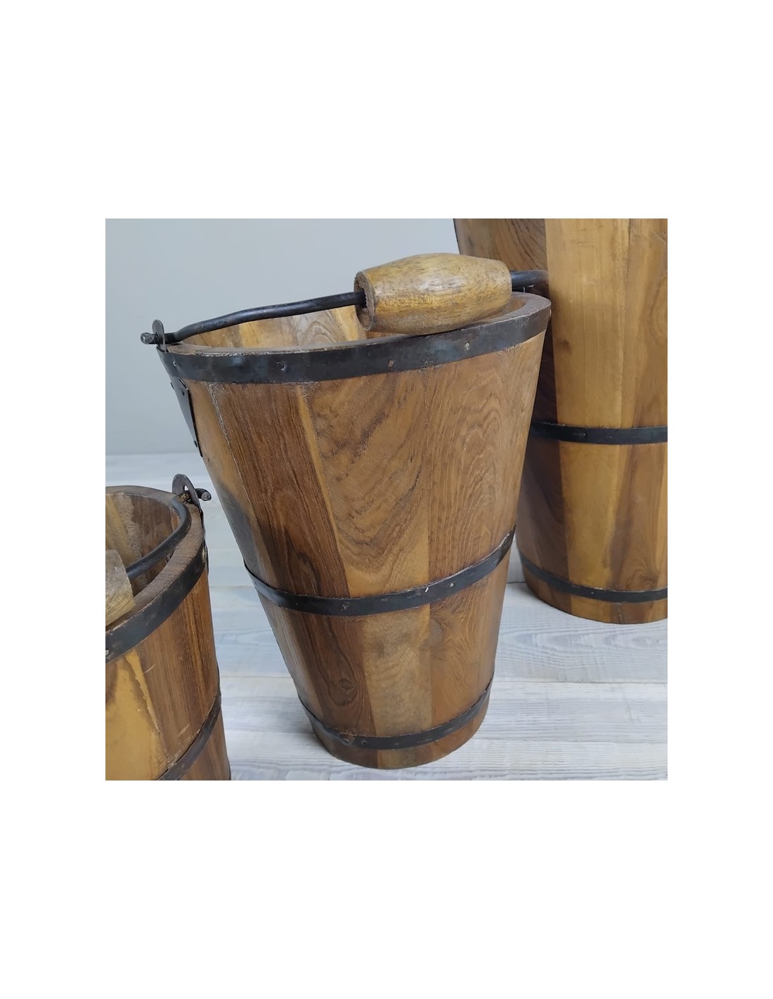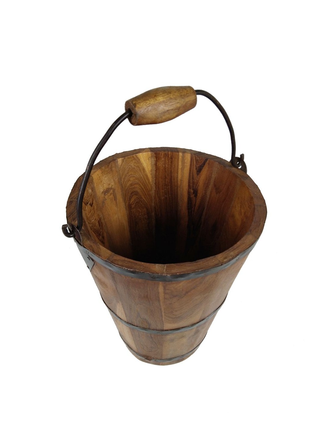 Seau en bois d'acacia avec poignée en fer – Fabriqué à la main et de style rustique.